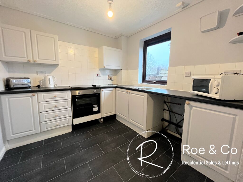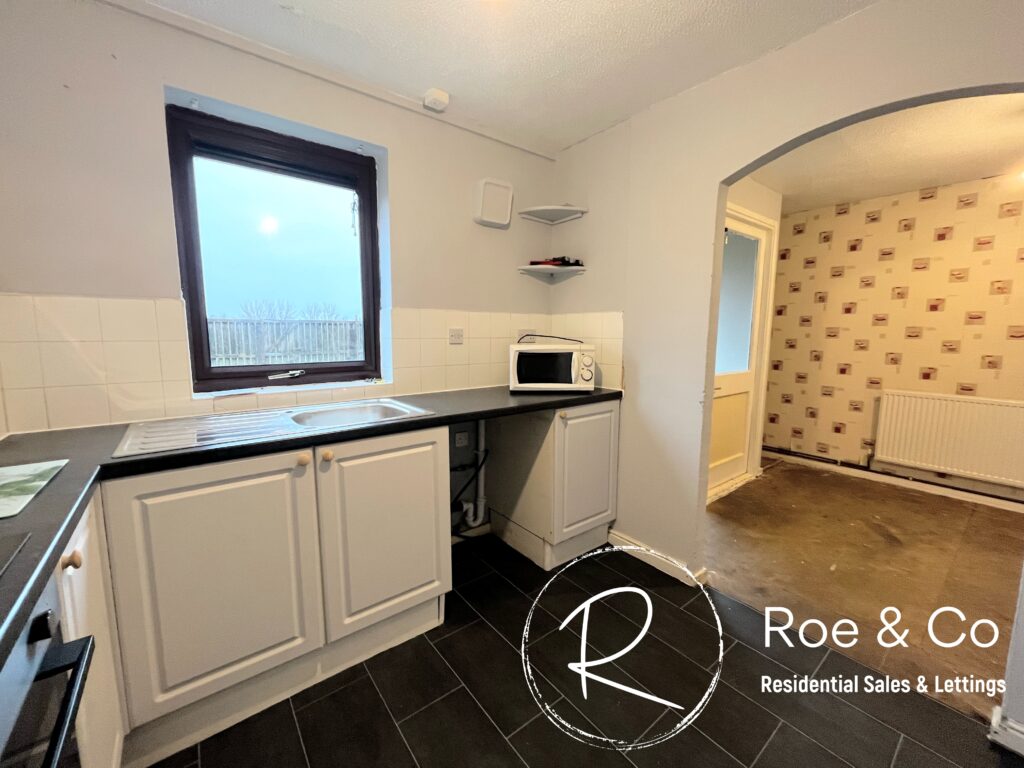Fitted kitchen units, integrated newly fitted oven and hob. Porch and door leading to the rear garden.
