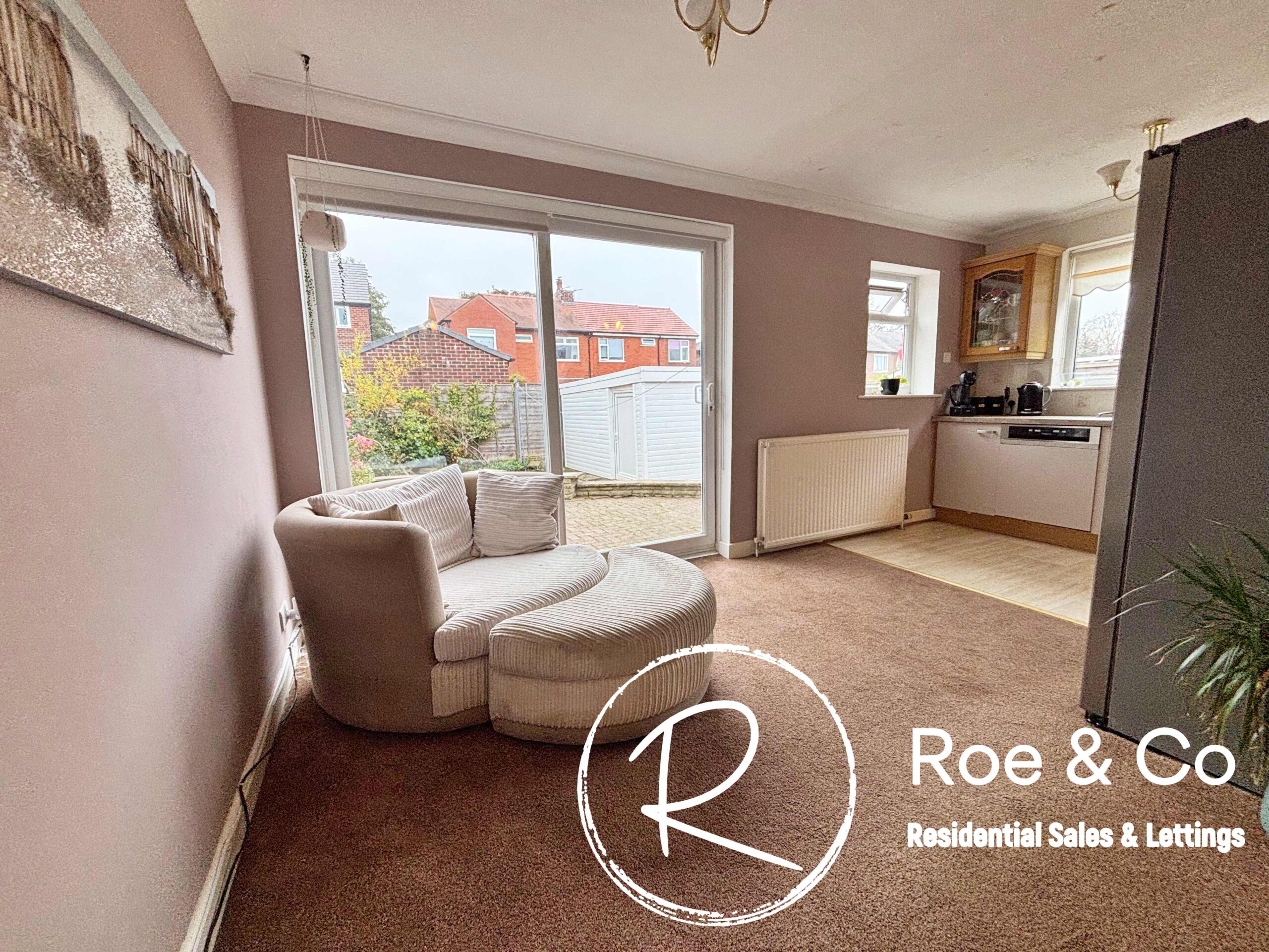 Kate Roe introduces this spacious 3-bedroom semi-detached house in Bradshaw. Boasting a spacious layout, this extended property spans over 1000 square feet and offers three generously sized bedrooms. Upon arrival, you are greeted with a driveway capable of accommodating three cars, along with the added convenience of a garage to the rear of the property. The rear garden is block paved for easy maintenance, which faces South-east.
