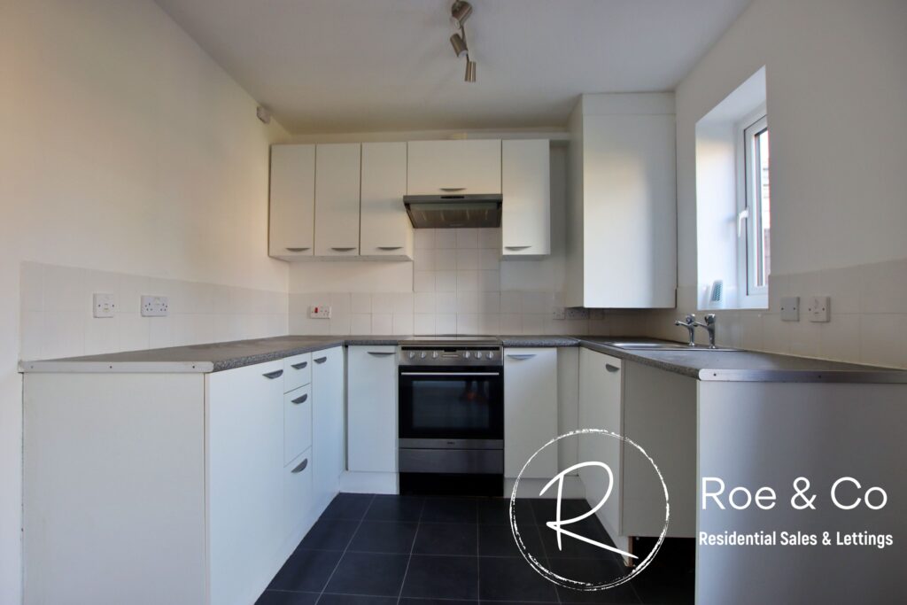 Fully fitted white kitchen, French doors which lead to the rear garden. Understairs storage cupboard.