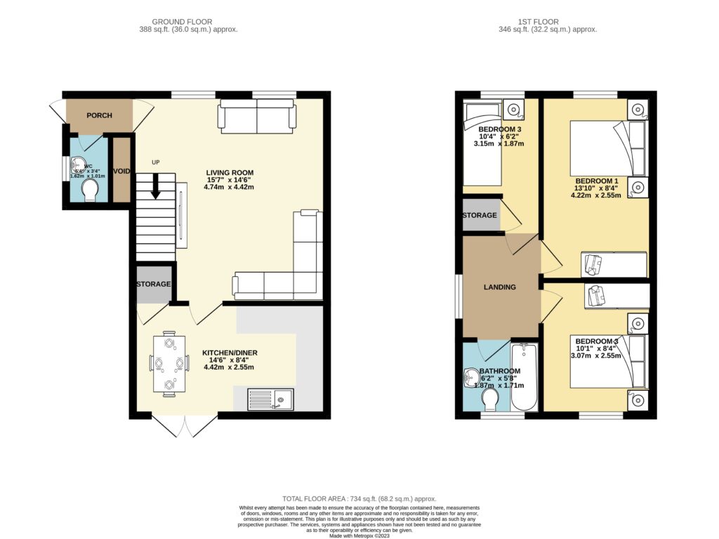 Bedroom Three 10′ 4″ x 5′ 10″ (3.15m x 1.78m)