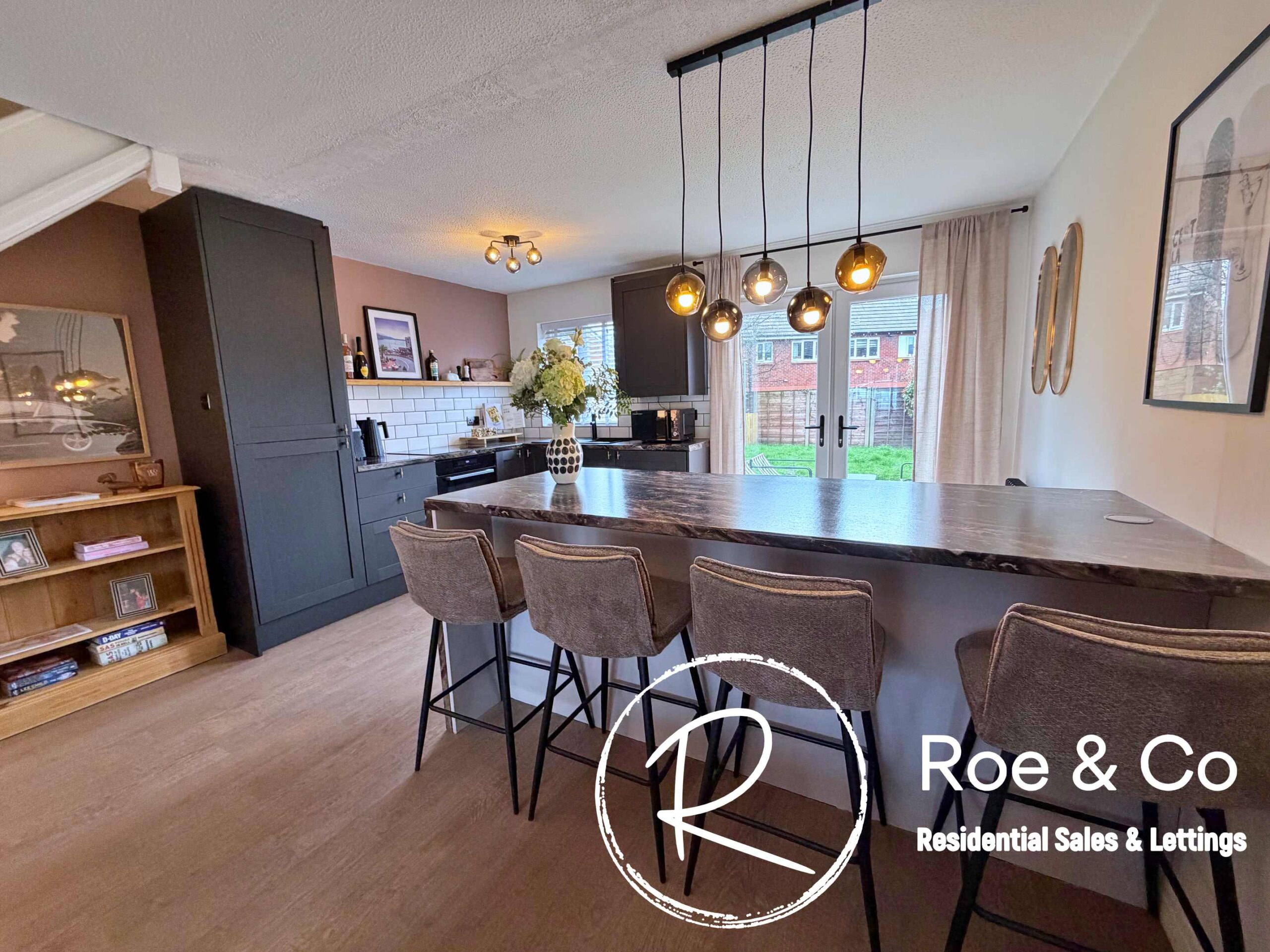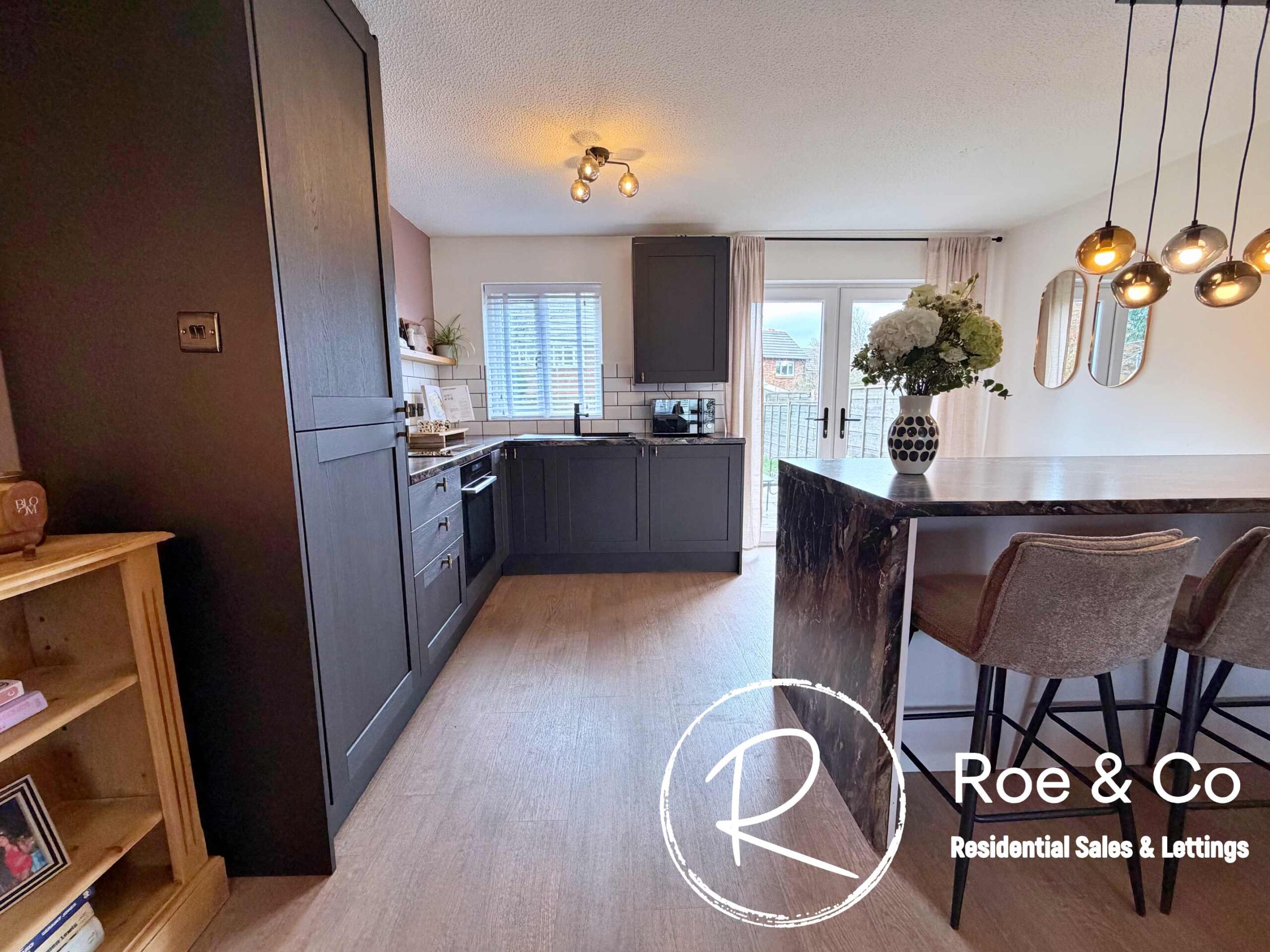 The property has been thoughtfully updated with a newly fitted kitchen and a stylish shower room, both installed in December 2024, ensuring a contemporary finish throughout. The inviting entrance porch leads into a bright and airy open plan lounge/diner/kitchen, ideal for entertaining or unwinding after a busy day. The kitchen features sleek cabinetry, integrated appliances, and generous breakfast bar to eat from with ample storage underneath. To the first floor, there are two double bedrooms, offering ample space for both relaxation and storage, the second bedroom is currently set out as a dressing room but can accommodate a double bed. Accompanied by a modern shower room.