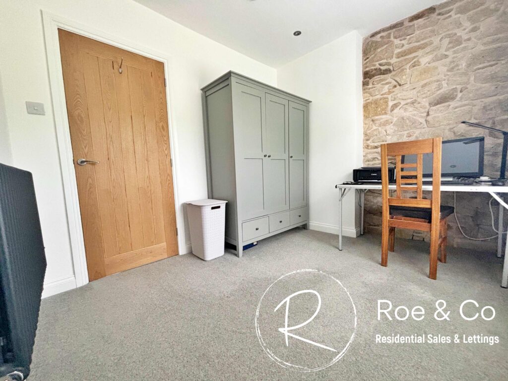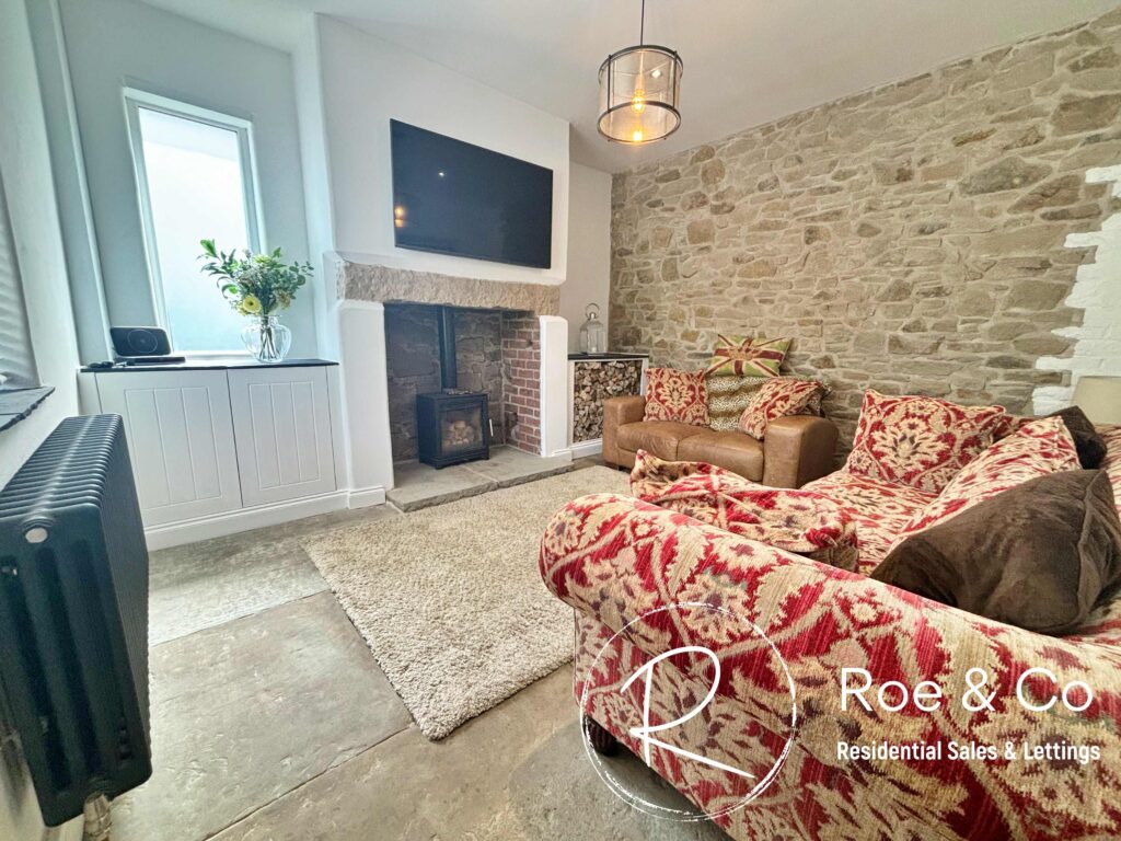 Fitted with a log burner, feature stone wall and storage cupboard under the window. Original flagged floor.