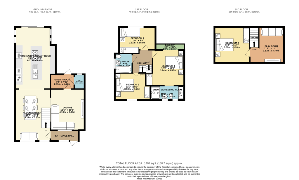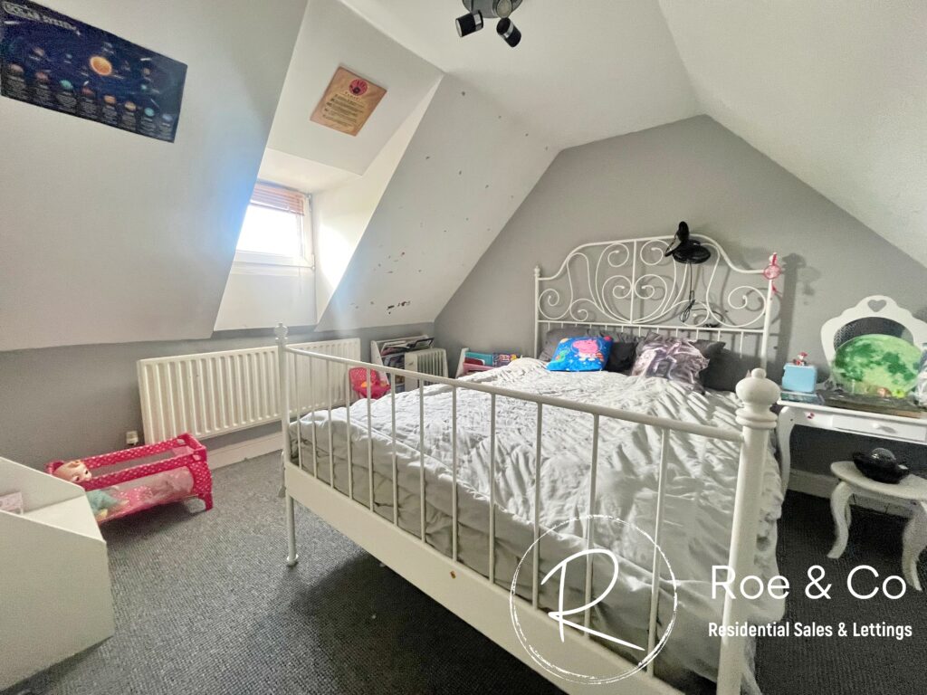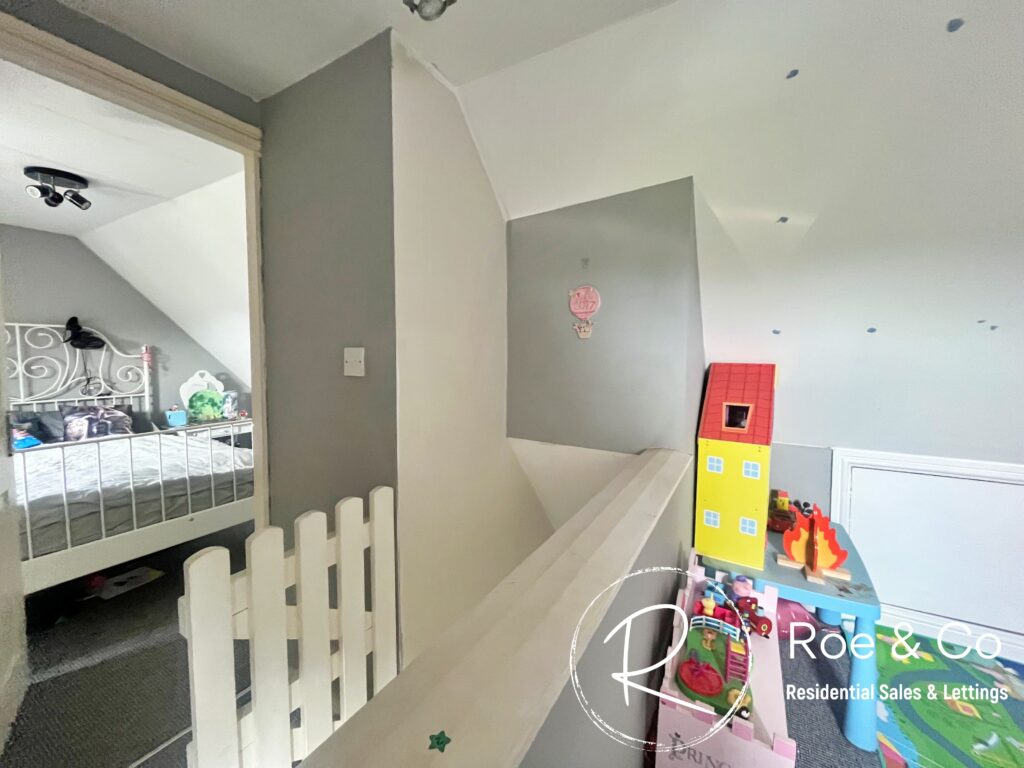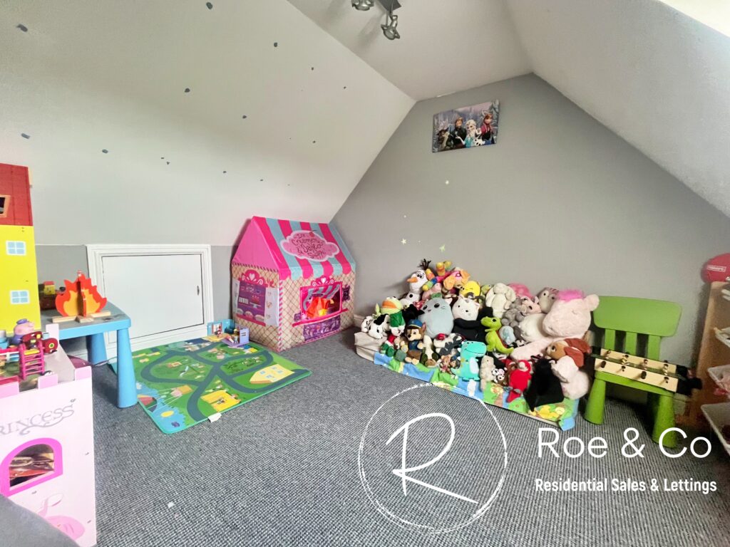 The top floor opens from the staircase into what could be a lounge addition to the bedroom, making a perfect space for a teenager or someone that wants their own space. The games room/play room is 11'9" x 11"11" in addition to bedroom two which has a doorway to provide privacy.