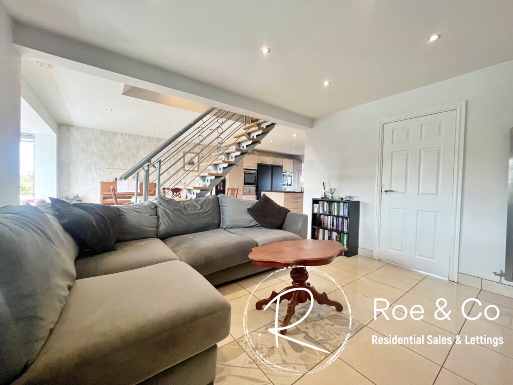 The downstairs living space offers a flexible living accommodation. The current owners have chosen to have the area away from the kitchen as the main living area, which then opens onto the utility room and downstairs W.C.