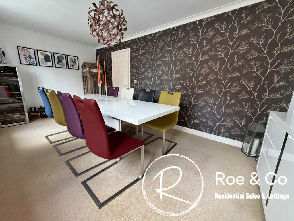 To the rear is a landscaped garden which gets the sun in the afternoon during the summer months, and has direct access to the garden & driveway to the rear. The beauty of this spot on Brynmoor is that it isn't overlooked to the front and has a quiet spot on Harpers Lane, with a landscaped garden to the front filled with trees and shrubs offering further privacy. Yet with private parking & access to the garage within the cul-de-sac to the rear.