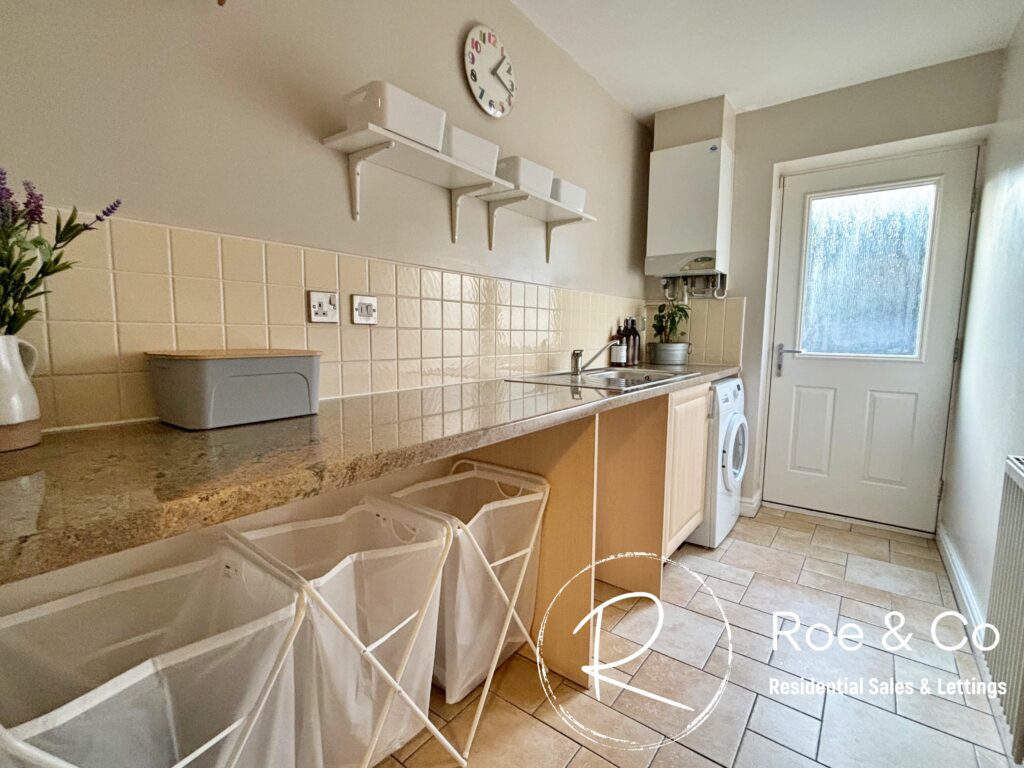 Located on the ground floor, with space for washing machine, dryer & sink. Door leading to the rear garden.