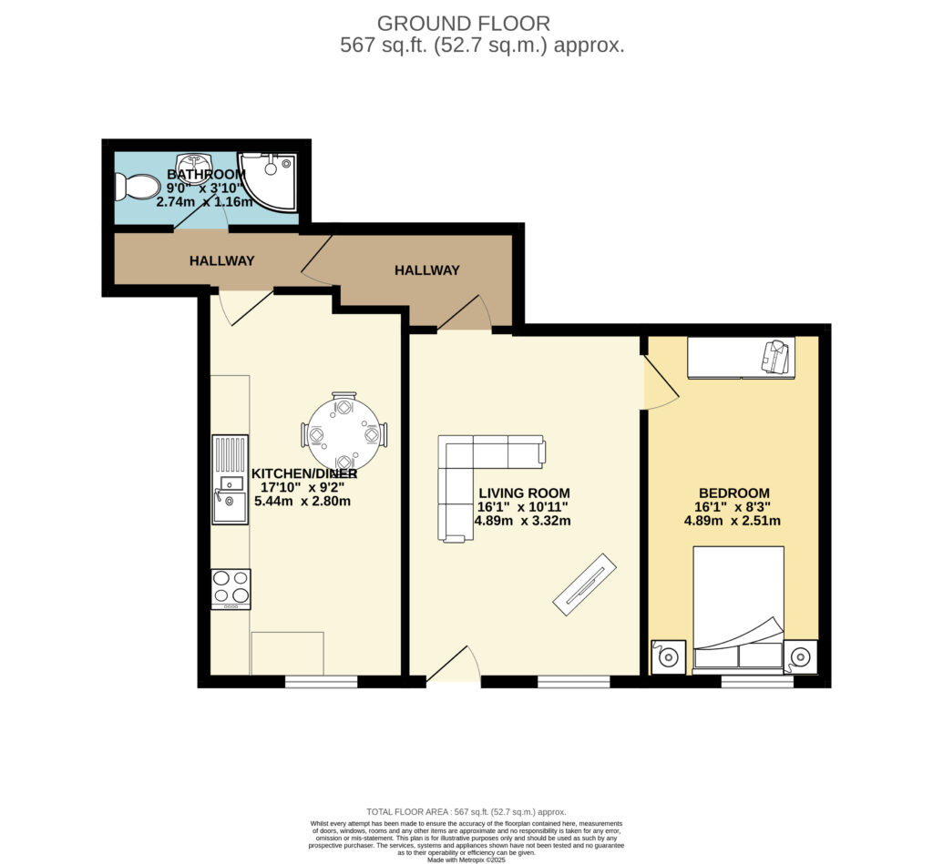 Bedroom 16' 1" x 8' 3" (4.90m x 2.51m)