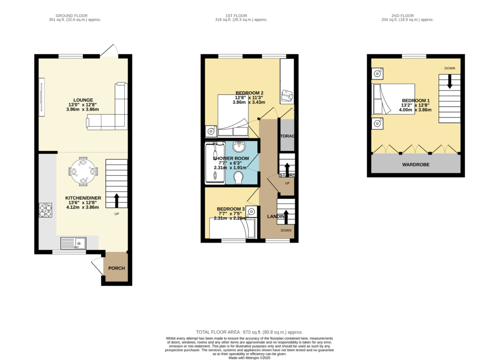 Bedroom three 7' 5" x 7' 5" (2.26m x 2.26m)