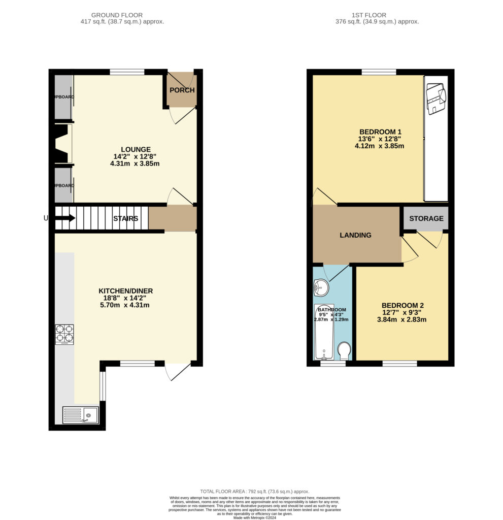 Bedroom 2 12' 7" x 9' 3" (3.84m x 2.83m)