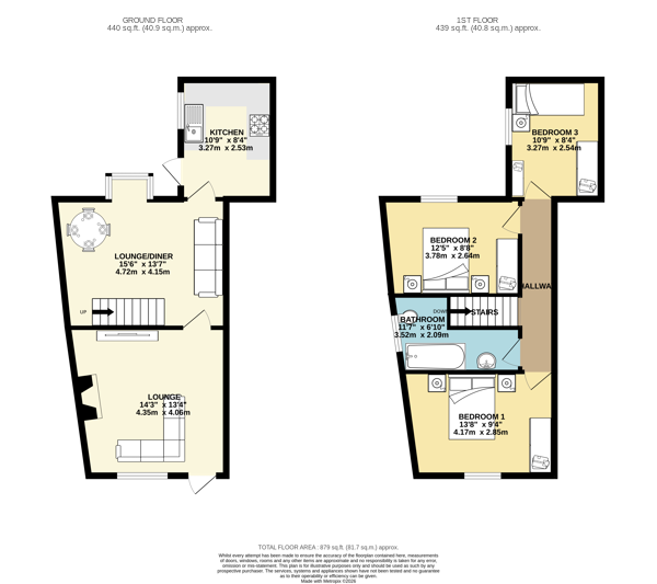 Bedroom 3 10' 9" x 8' 4" (3.27m x 2.54m)