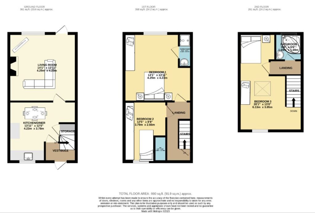 Master Bedroom 14′ 1″ x 13′ 11″ (4.29m x 4.23m)