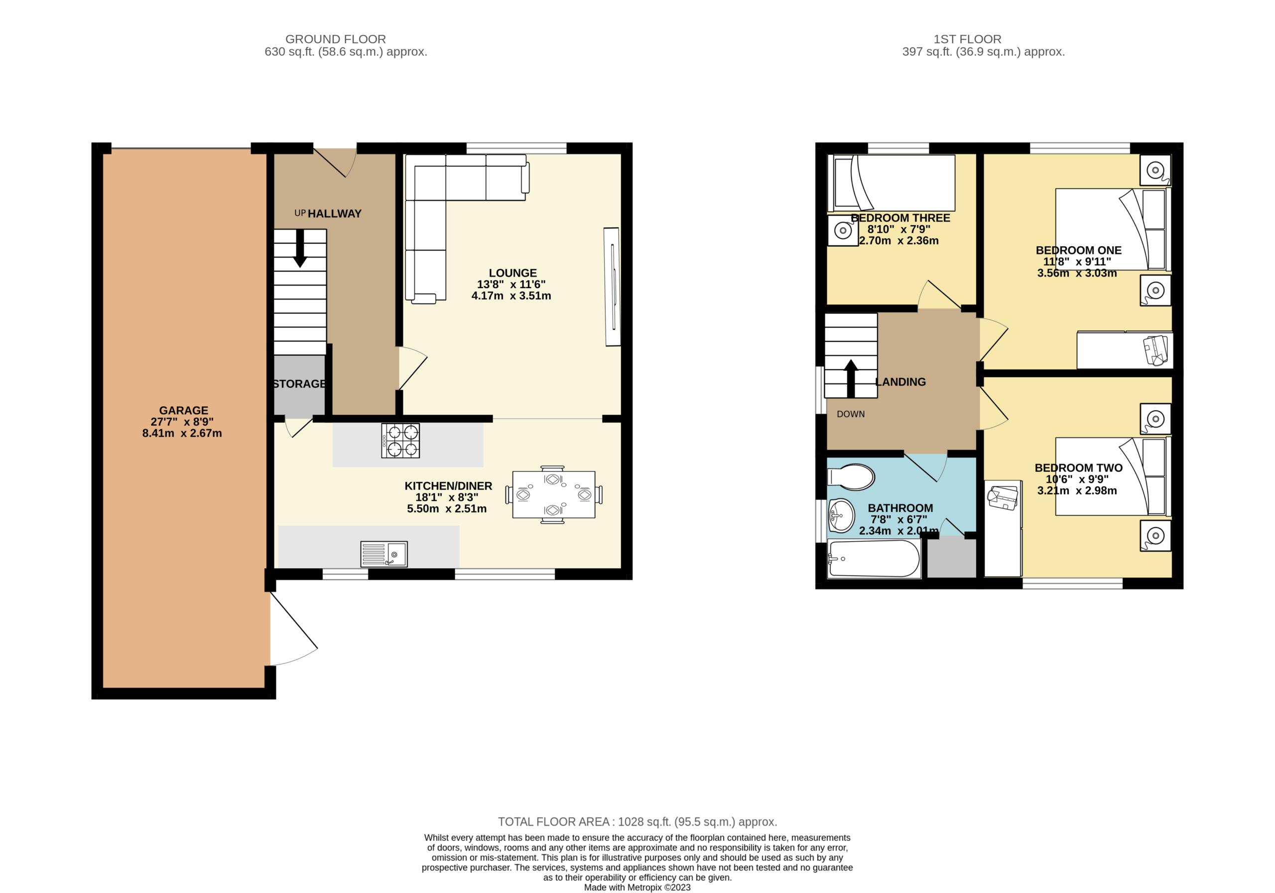 Bedroom Three 8' 10" x 7' 9" (2.69m x 2.36m)