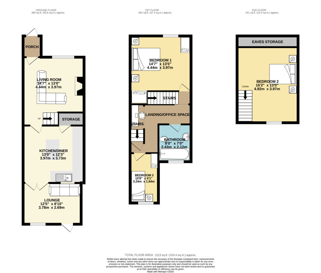 Bedroom three 10' 8" x 5' 9" (3.25m x 1.75m)