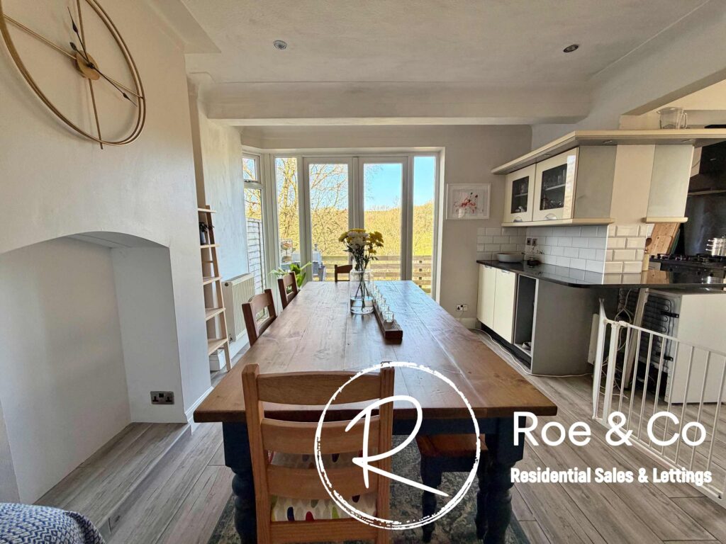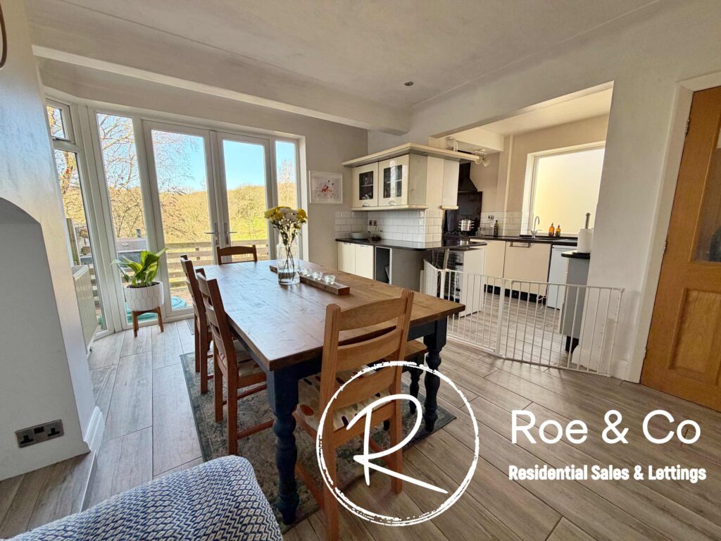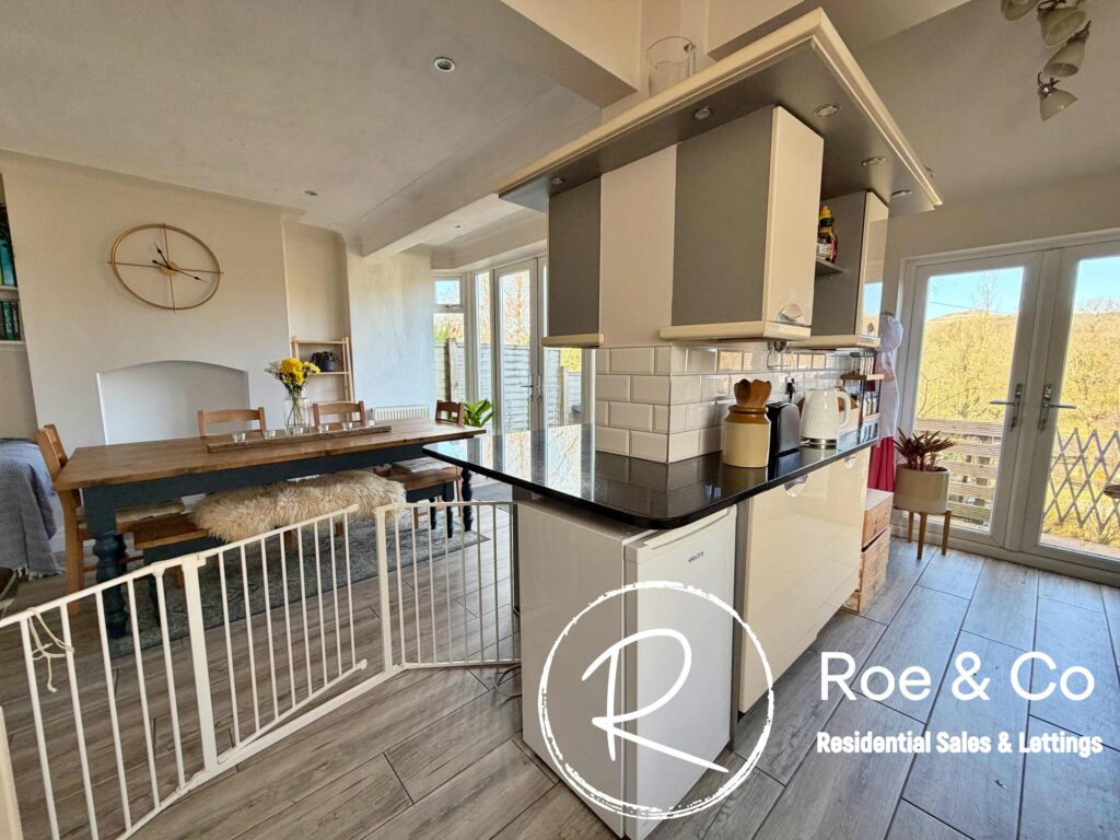 Upon arrival, you are greeted by a large porch area, entrance hallway which boasts wooden flooring, a decorative radiator, and a patterned carpeted staircase, offering a warm and inviting atmosphere. The heart of the home is the modern open plan kitchen/lounge/dining area which has an abundant of natural light which streams through French doors that open directly onto the garden and benefits from the amazing views.