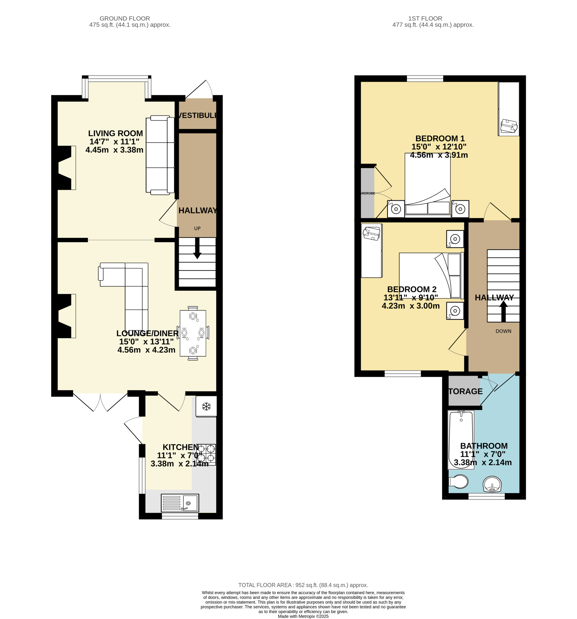 Upon entering, you are greeted by a welcoming hallway that leads to two well-proportioned reception rooms, which are currently open planned but couldn't be separated if needed. The kitchen is conveniently located to the rear of the property, providing easy access to the dining area and reception rooms. The property features two generous double bedrooms and with some re configuration could be converted to a 3 bedroom property, making this a flexible and future-proof choice for growing families. To the rear of the property on the second floor is a large bathroom.