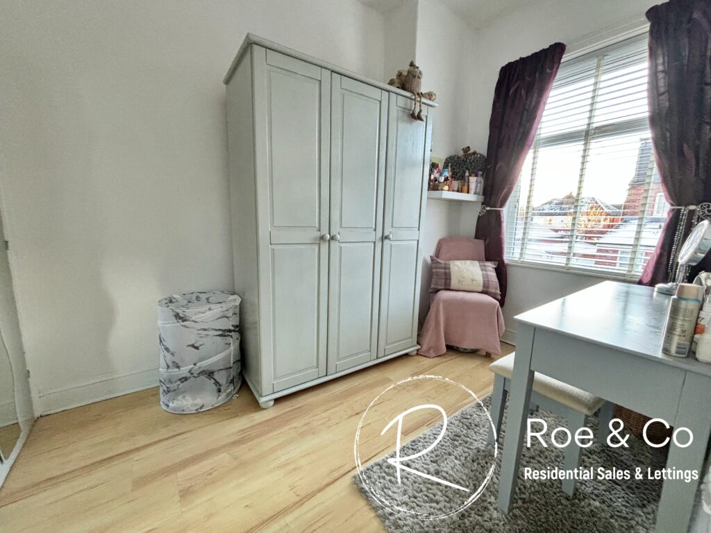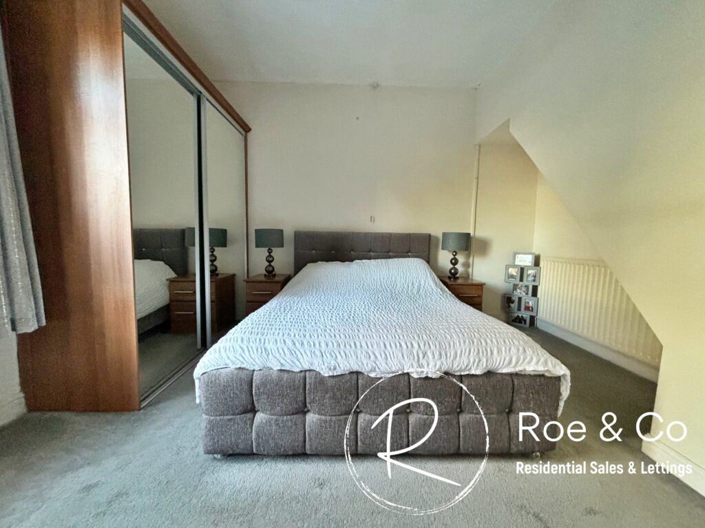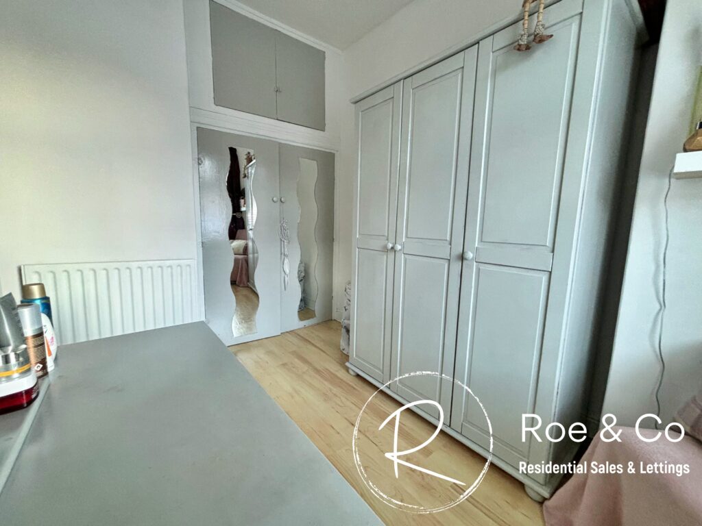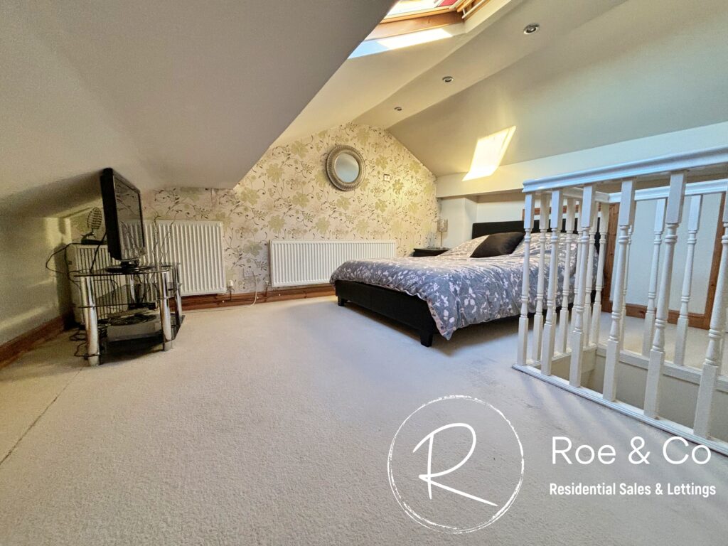 A converted loft space, not done to regulations and therefore cannot be classed as bedroom but currently used as one. Fixed staircase with a door at the bottom, Velux window & radiator, fitted with eaves storage.
