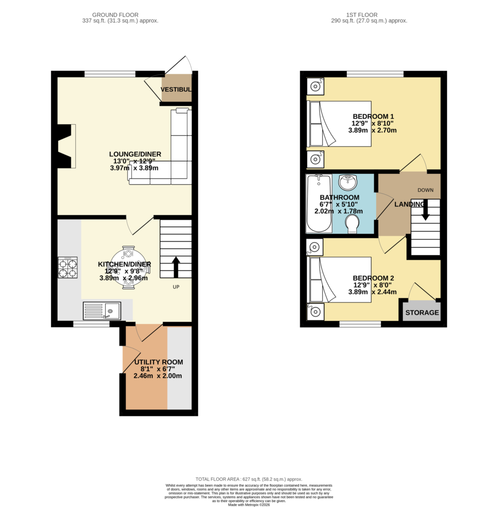 Kitchen/diner 9' 8" x 12' 7" (2.95m x 3.84m)