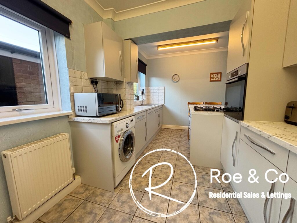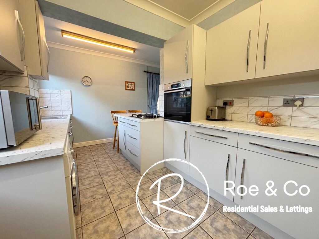 Inside, the property features three bedrooms with the second bedroom recently fitted with modern wardrobes, providing ample space for a growing family and a shower room with separate W.C.. The living areas are bright and inviting, with natural light flooding through the windows, creating a warm and welcoming atmosphere. The kitchen is well-equipped, offering a functional space for cooking and dining, perfect for entertaining guests or enjoying family meals together.