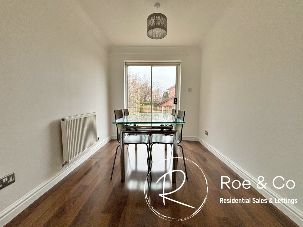 The house comprises of three double bedrooms, with the master bedroom benefiting from an en-suite bathroom and double walk in wardrobes for extra storage. In addition, there is a downstairs W.C. and a family bathroom, ensuring convenience for all members of the household. One of the standout features of this property is the large rear garden, which provides a peaceful and secluded outdoor space. Not overlooked, it offers a sense of privacy and security. Accessed from both the dining room and the kitchen, this garden features a well-maintained lawn and a charming patio area, perfect for alfresco dining or simply enjoying the sunshine.