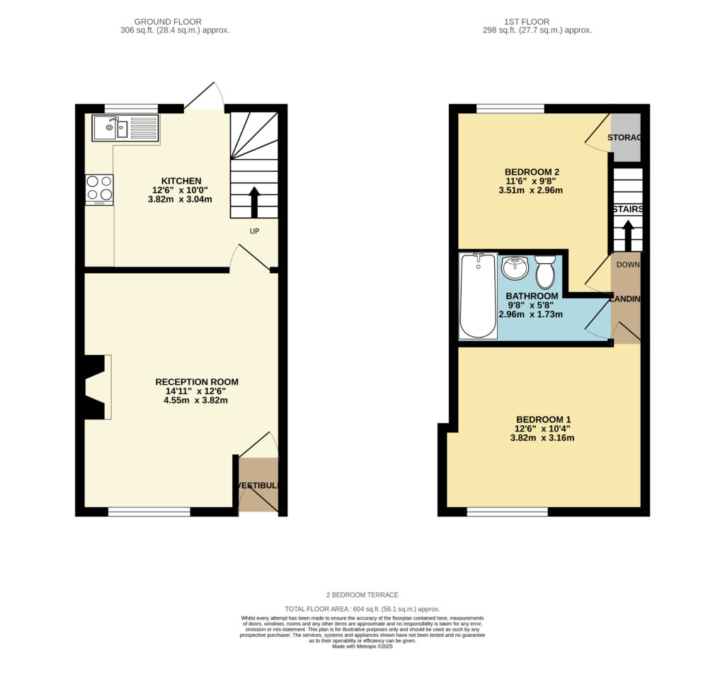 Bedroom 2 8' 6" x 9' 9" (2.58m x 2.97m)