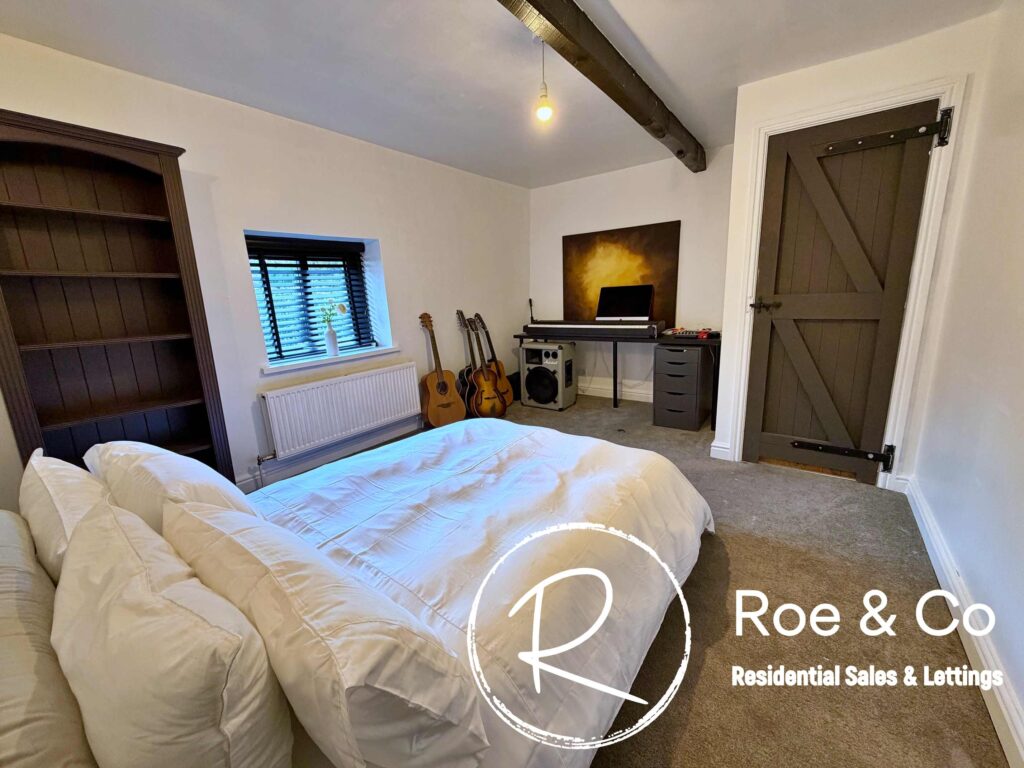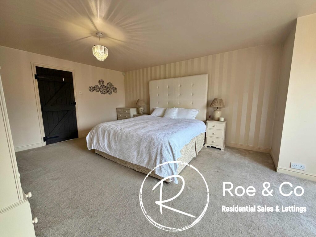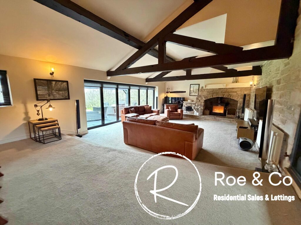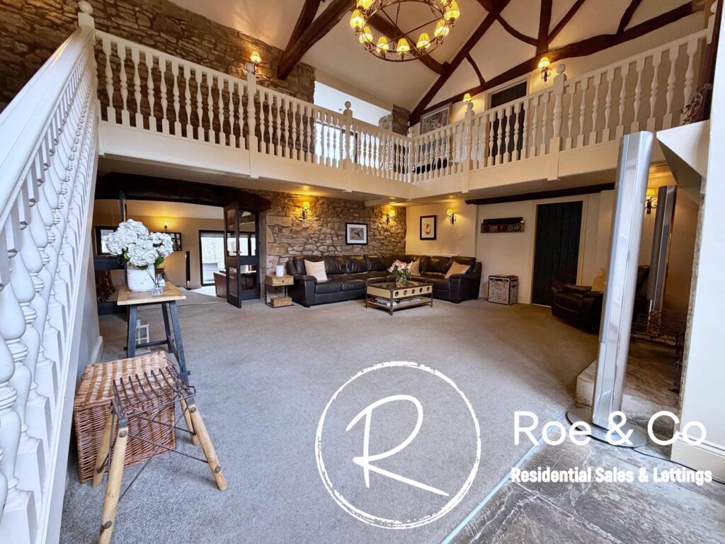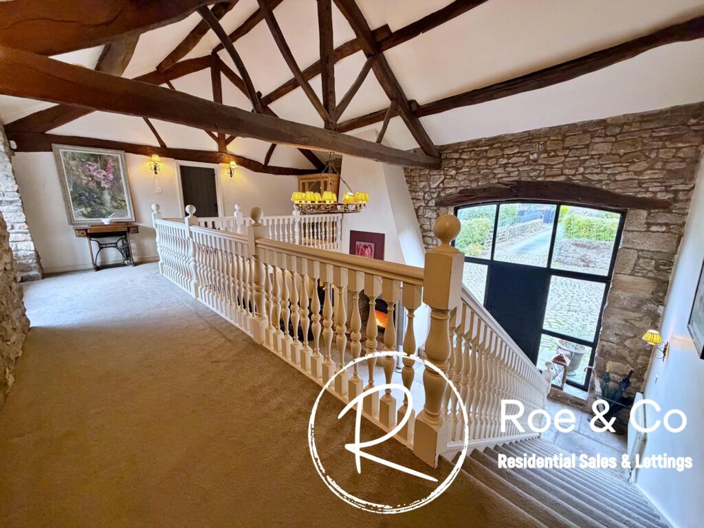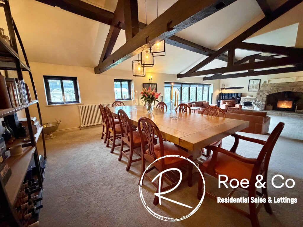 Upstairs, four further bedrooms are generously proportioned, including a principal suite with its own en-suite bathroom and beautiful views over the golf course, while the remaining bedrooms are served by a well-appointed family bathroom. Throughout the home, the period barn character is celebrated with exposed beams, high ceilings, and thoughtful touches such as additional log burners, combining to create a warm and inviting atmosphere.