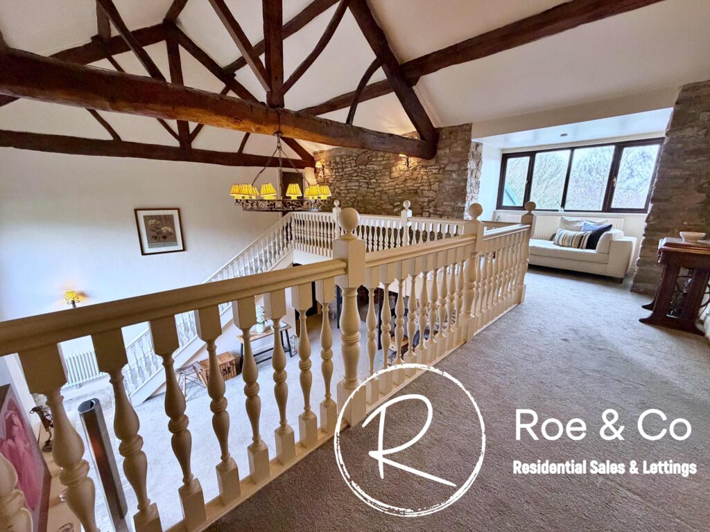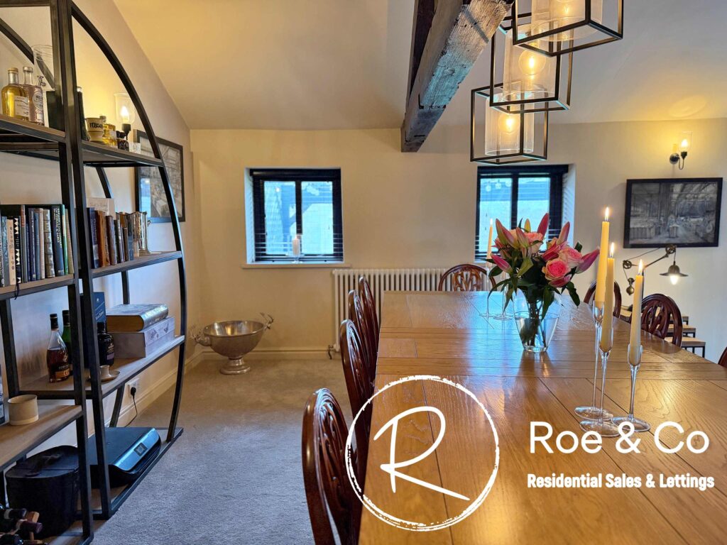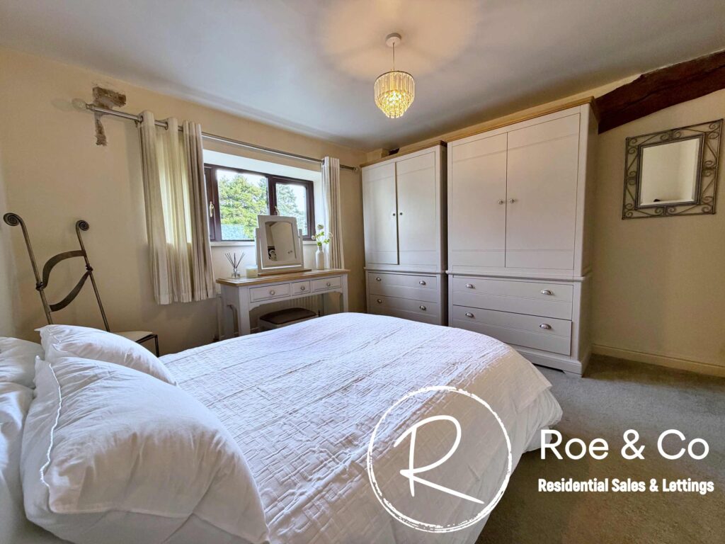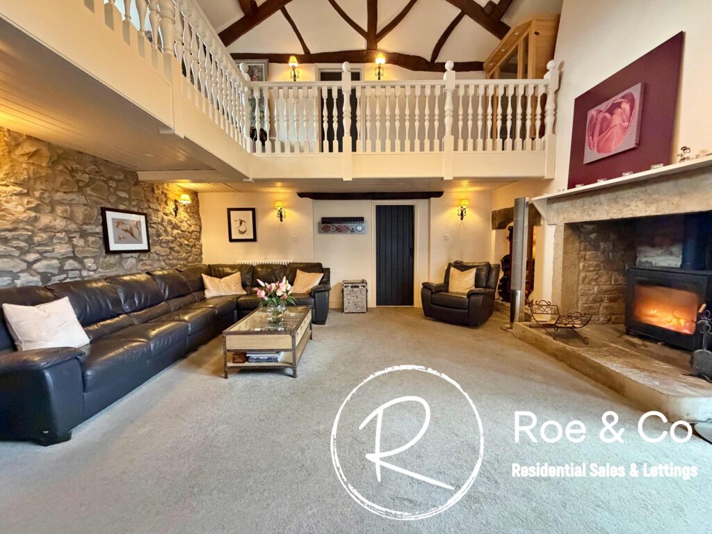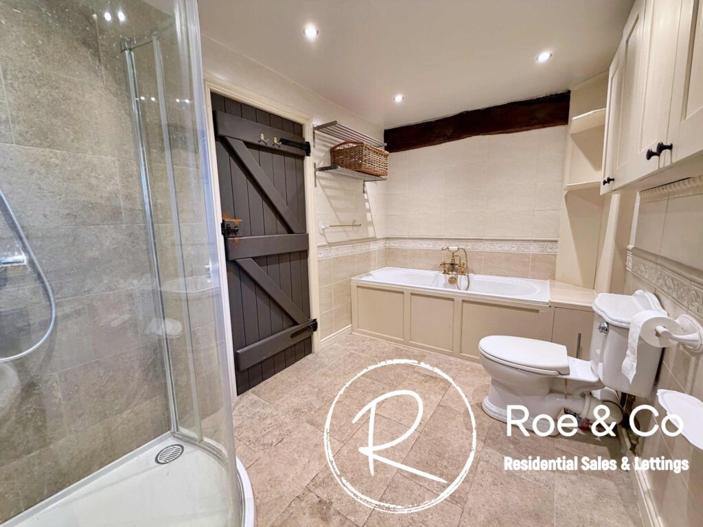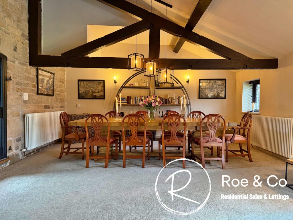 Upstairs, four further bedrooms are generously proportioned, including a principal suite with its own en-suite bathroom and beautiful views over the golf course, while the remaining bedrooms are served by a well-appointed family bathroom. Throughout the home, the period barn character is celebrated with exposed beams, high ceilings, and thoughtful touches such as additional log burners, combining to create a warm and inviting atmosphere.