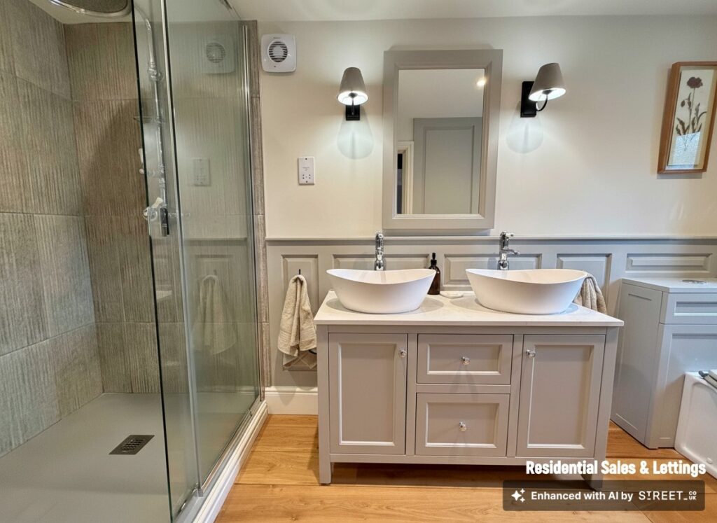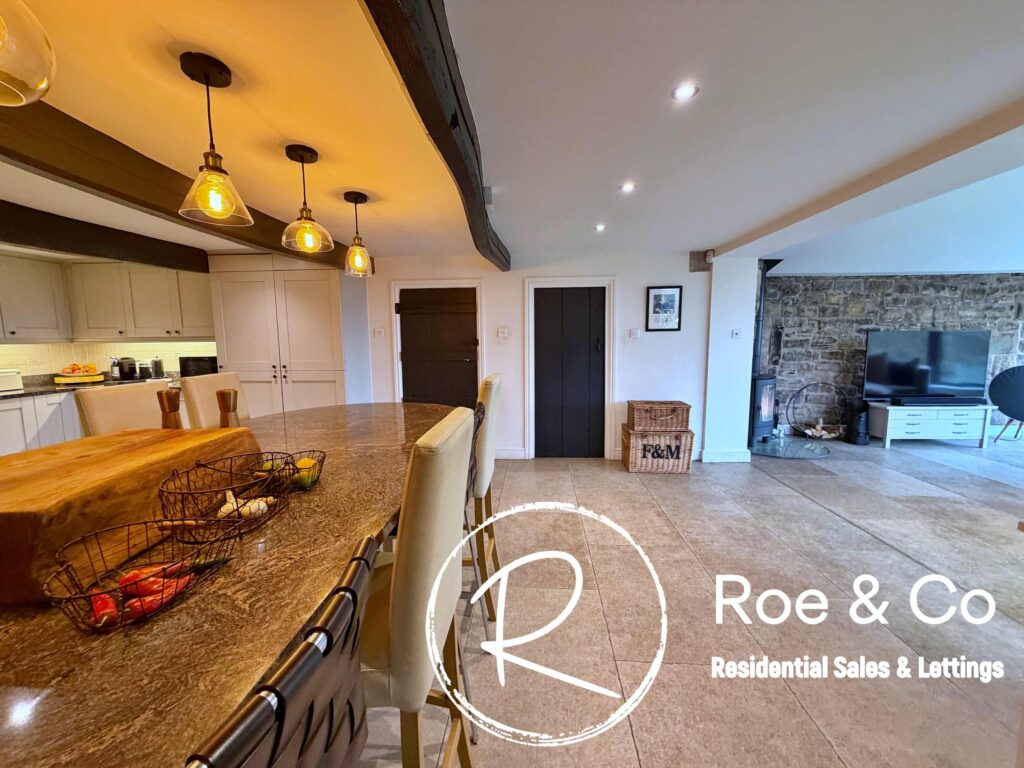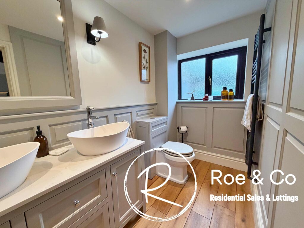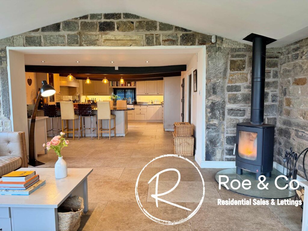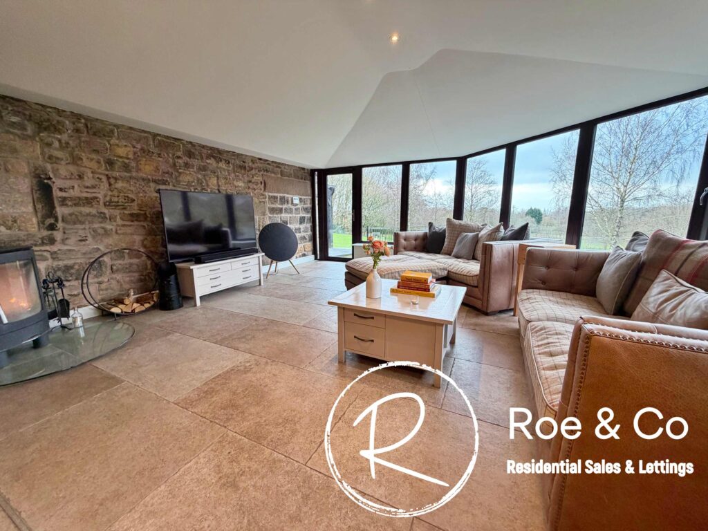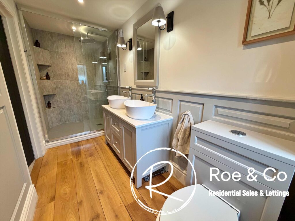 Upstairs, four further bedrooms are generously proportioned, including a principal suite with its own en-suite bathroom and beautiful views over the golf course, while the remaining bedrooms are served by a well-appointed family bathroom. Throughout the home, the period barn character is celebrated with exposed beams, high ceilings, and thoughtful touches such as additional log burners, combining to create a warm and inviting atmosphere.