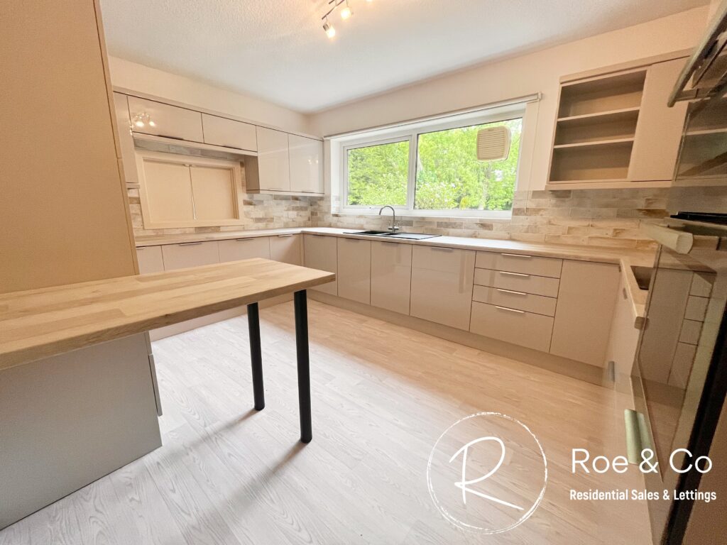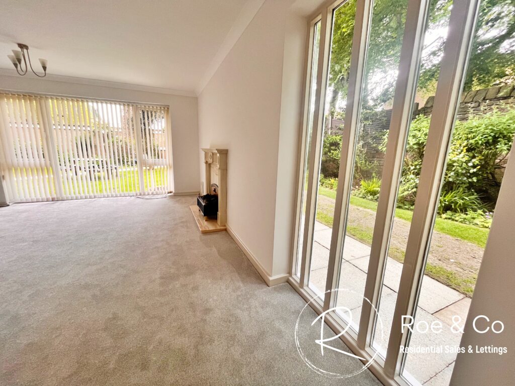 Leading on from the lounge with a large window overlooking the gardens, fitted with a hatch which opens onto the kitchen to allow the passing of food directly from the kitchen into the dining room.