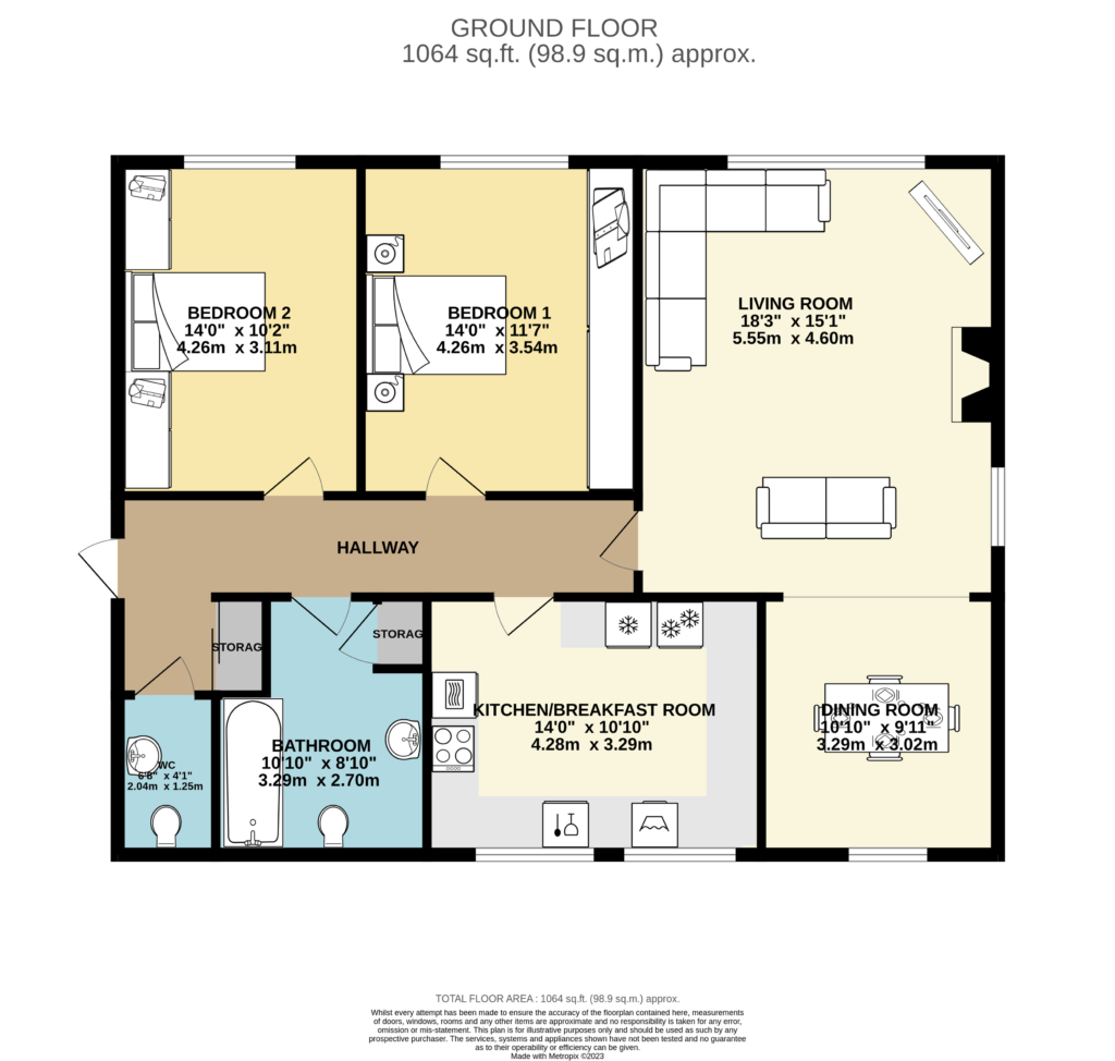 Guest W.C. 6' 11" x 4' 1" (2.11m x 1.24m)