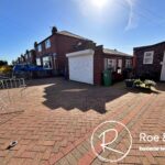 The property also benefits from a garage with an electronic shutter door, offering secure parking or additional storage/workshop, and a gated driveway accommodating two to three vehicles. The gardens wrap around from the front to the side & rear.