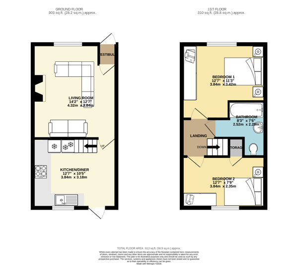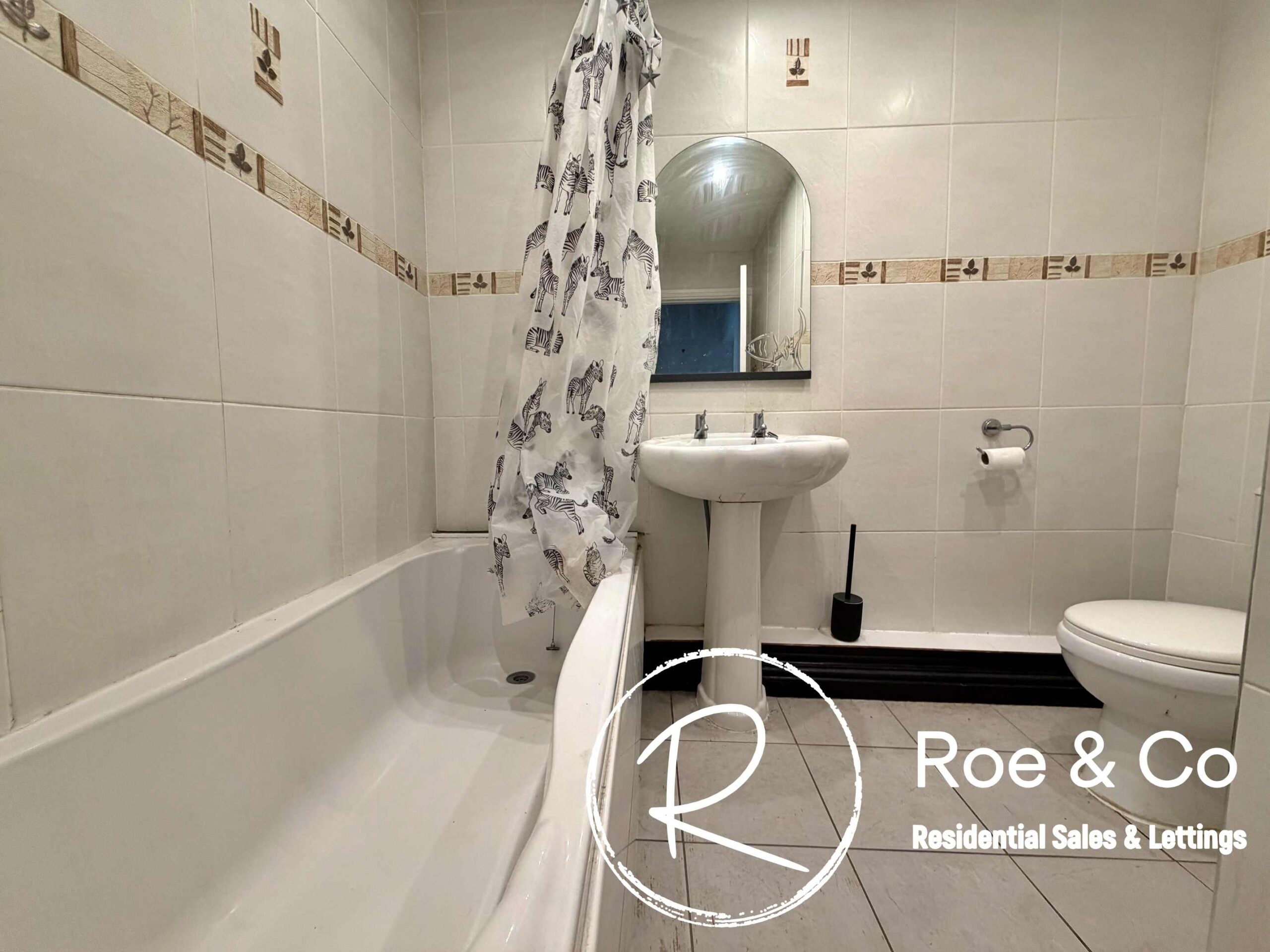 The home opens into a welcoming lounge with a vestibule & the adjoining kitchen is thoughtfully designed with ample worktop space and integrated appliances. Upstairs, the property boasts two double bedrooms, the master with fitted wardrobes. The family bathroom is fitted with a contemporary white suite, including a bath-tub with shower over, wash basin, and WC.