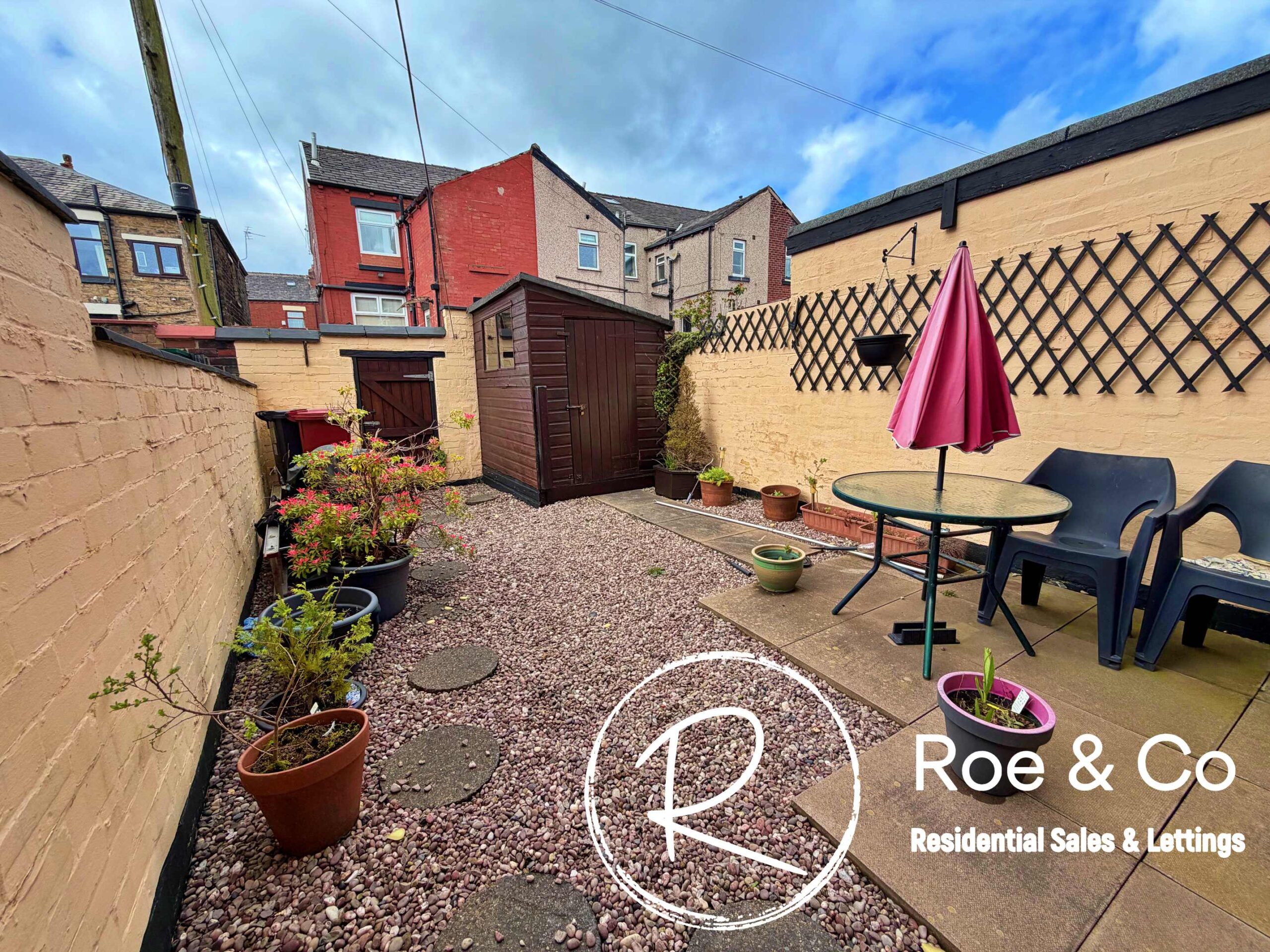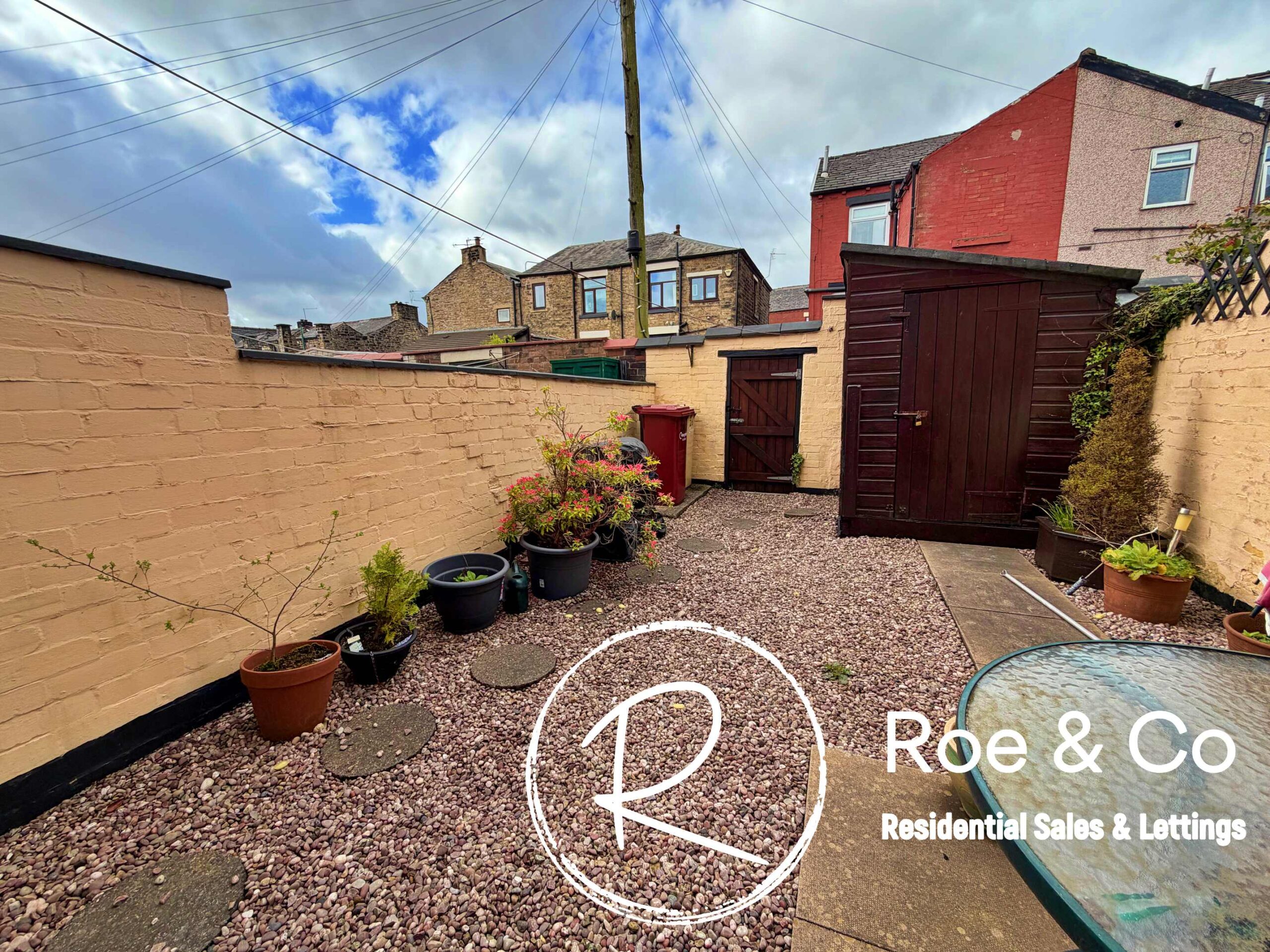 Externally there is a low maintenance yard, with a gate for bin access and a shed for storage.