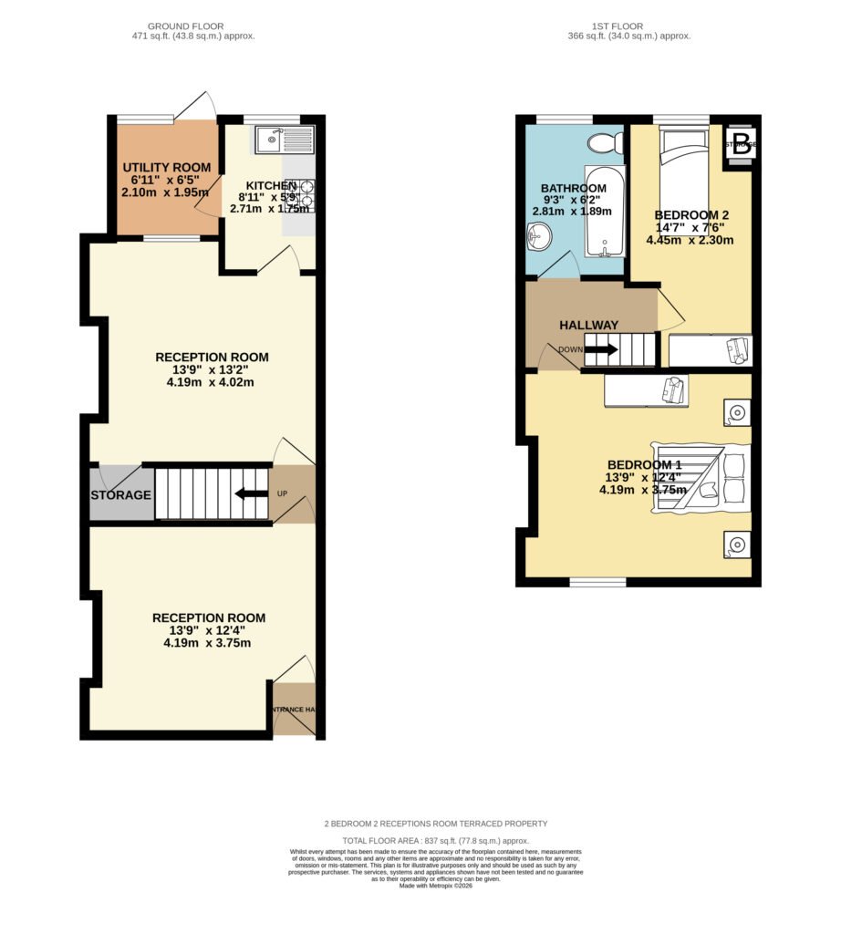Upstairs, you’ll find two spacious bedrooms, each offering plenty of room for storage along with a family bathroom. Fresh carpets throughout add to the sense of comfort and quality, while the layout creates a homely and welcoming atmosphere.