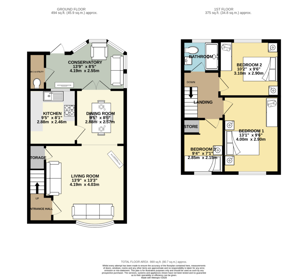 The property was originally designed as a three bedroom property, however the previous owner knocked bedroom three and bedroom one, into one to create a large bedroom. If three bedrooms are required, it would be an easy fix to partition the rooms again. Throughout the current owners have decorated the property tastefully and have had a modern kitchen & shower room fitted and to the rear is a large conservatory, which accesses a downstairs W.C. & Utility room.