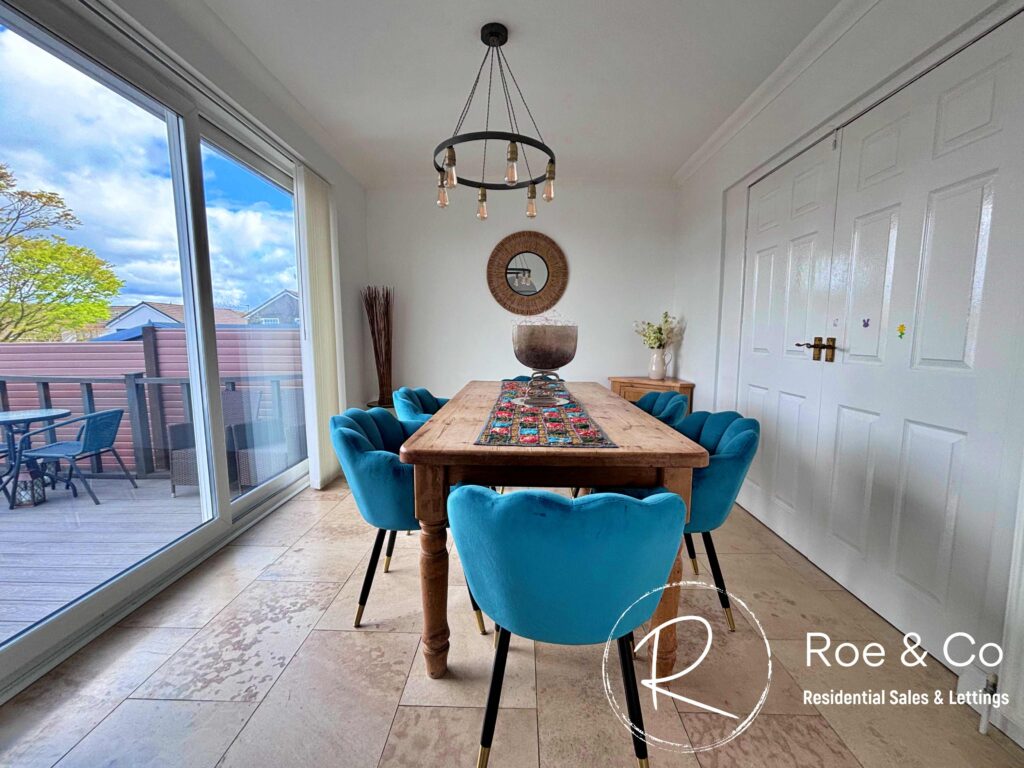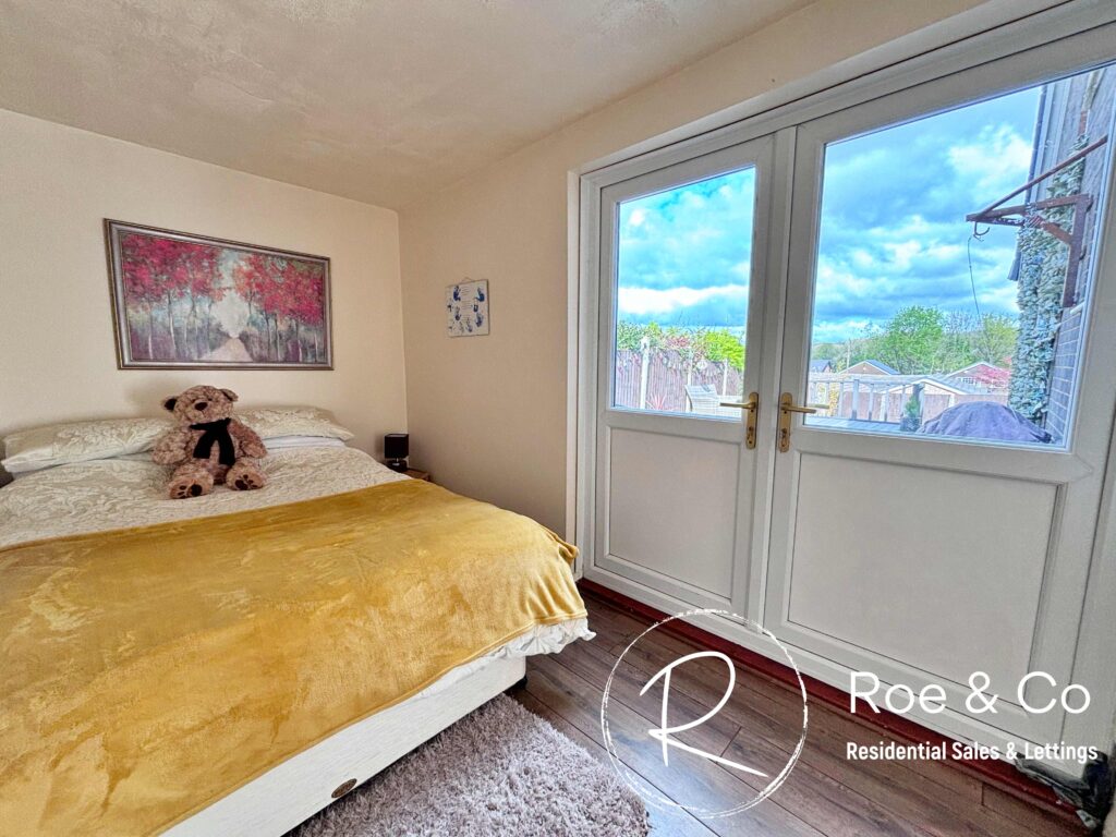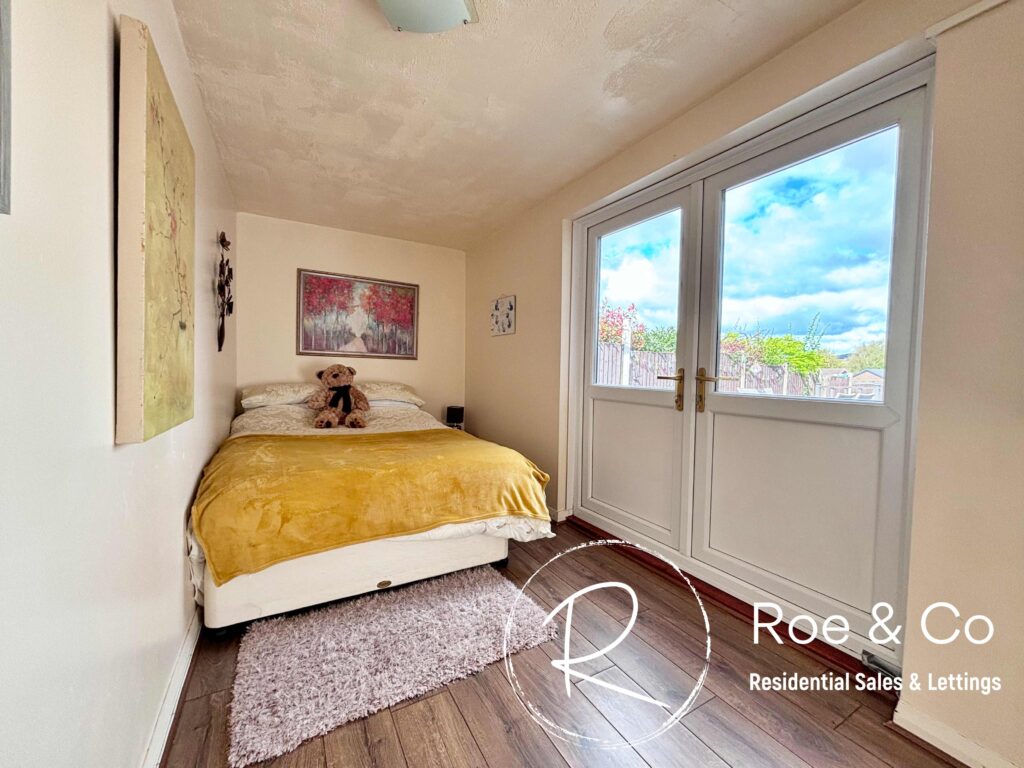 Sliding doors leading onto the decked area off the rear, double doors leading onto the living room.