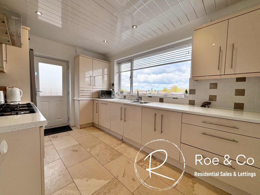 Fully fitted modern kitchen with integrated dishwasher, inset sink, space for fridge/freezer & Range Style oven.