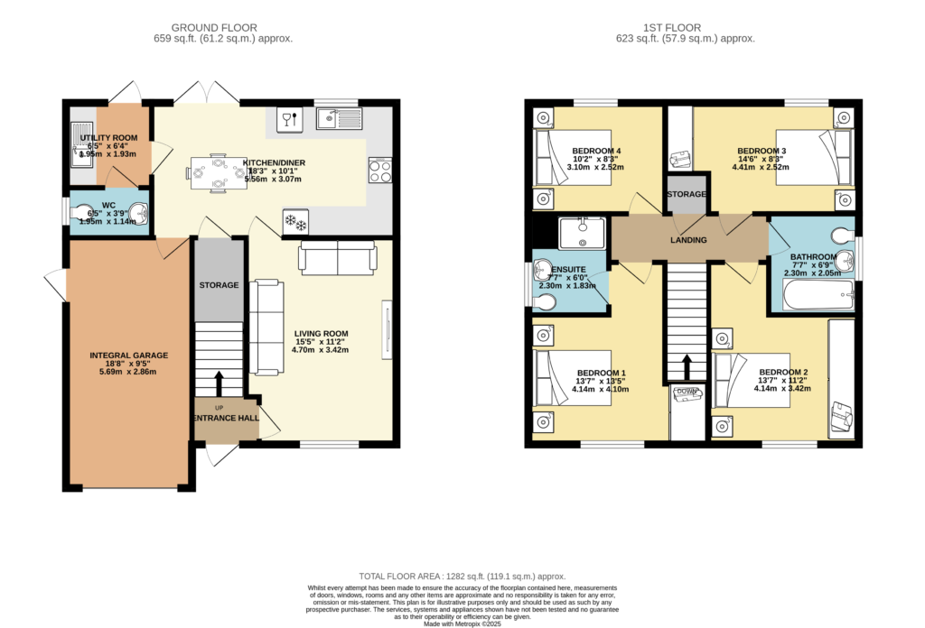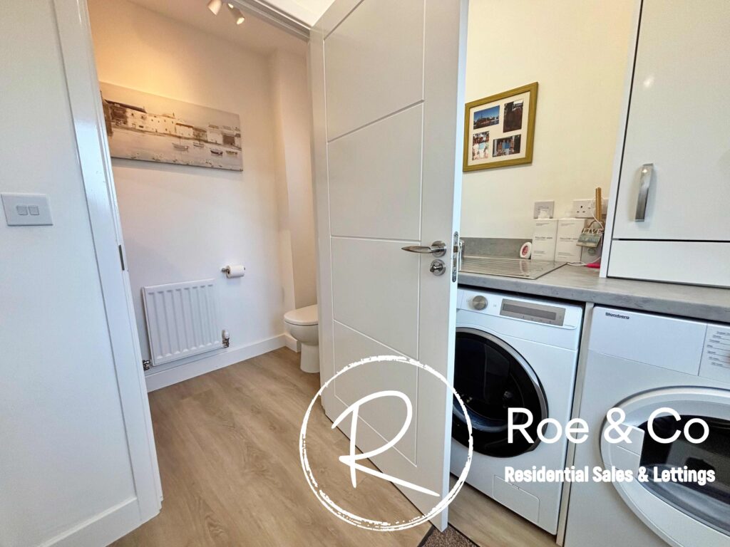 Internally the property is in show home condition and presented to a high standard throughout. The property benefits from additional extra’s such as an integral door into the garage & a partially boarded loft with loft ladder. There is a welcoming lounge, finished off with panelling, which opens up onto the large kitchen/diner, with ample storage & under stair storage. The access to the garage is from the kitchen, making it ideal for even further storage and easy access. The downstairs is complemented by a utility room & downstairs W.C. To the first floor there are four double bedrooms, the master with an en-suite & a family bathroom. Externally there is a good sized garden, which has been landscaped, finished with flags for low maintained and the fences lined with a modern aesthetic. You can access the front of the property from both sides of the rear garden too.