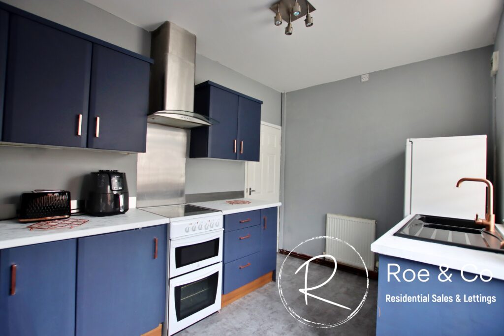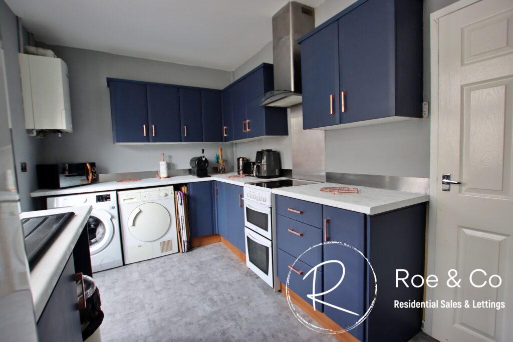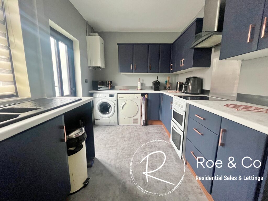 Fully fitted kitchen, space for washing machine, dryer, fridge/freezer & oven.