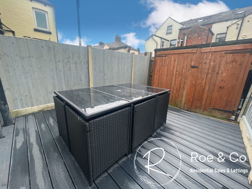 As you step outside, you'll find an enclosed area to the front of the property, featuring artificial grass and to the rear an area laid with composite decking, both that require minimal maintenance.