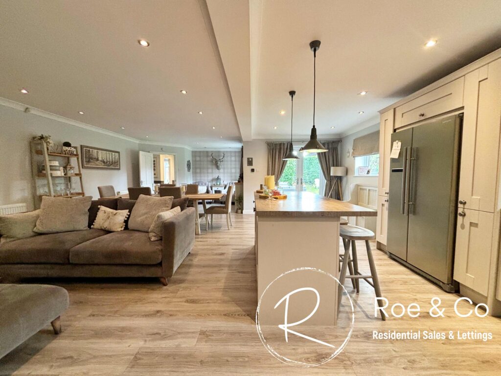 Sue McDermott introduces this extremely deceptive & equally stunning 4 bedroom detached house, located in a sought-after location just off Newbrook Road. Boasting a sizeable 2600 sq feet of contemporary living space, this immaculately presented property is sure to captivate discerning buyers. Stepping inside, to the first floor you'll discover a large master suite complete with a walk-in wardrobe and en-suite, alongside two other spacious double bedrooms & a four piece bathroom suite. The ground floor houses a versatile cinema room/bedroom with its own en-suite, perfect for guests or cosy movie nights. The heart of the home lies in the modern kitchen/family/dining room, providing the perfect backdrop for entertaining or family meals and an additional lounge for relaxing. Accompanied by a utility room & downstairs W.C. The house comes complete with a new boiler installed in 2022, ensuring efficiency and comfort for years to come.