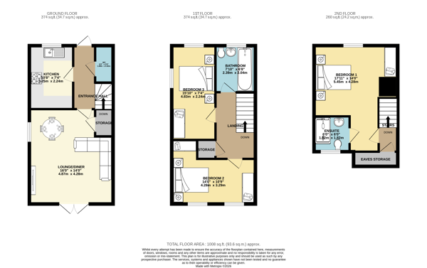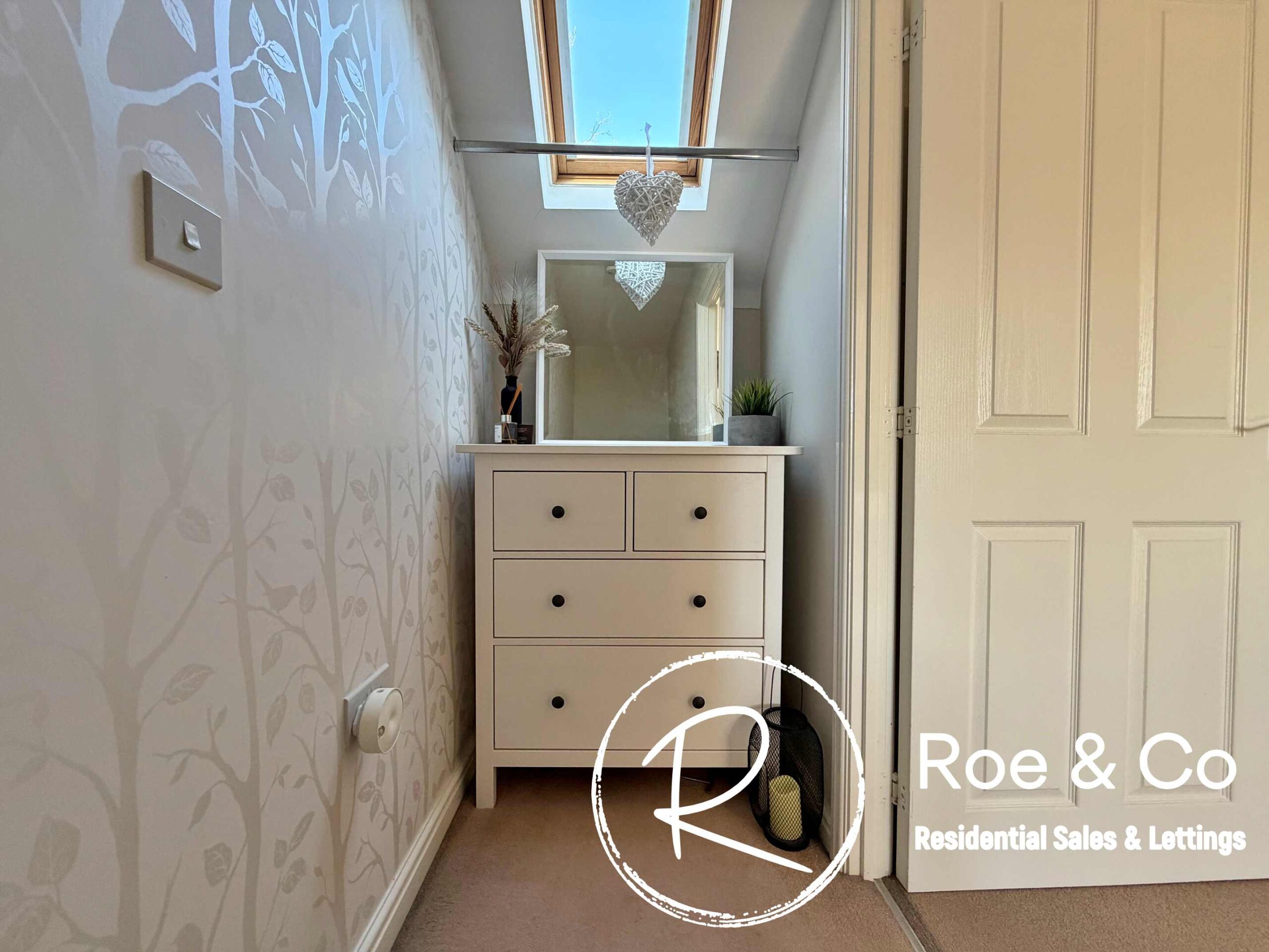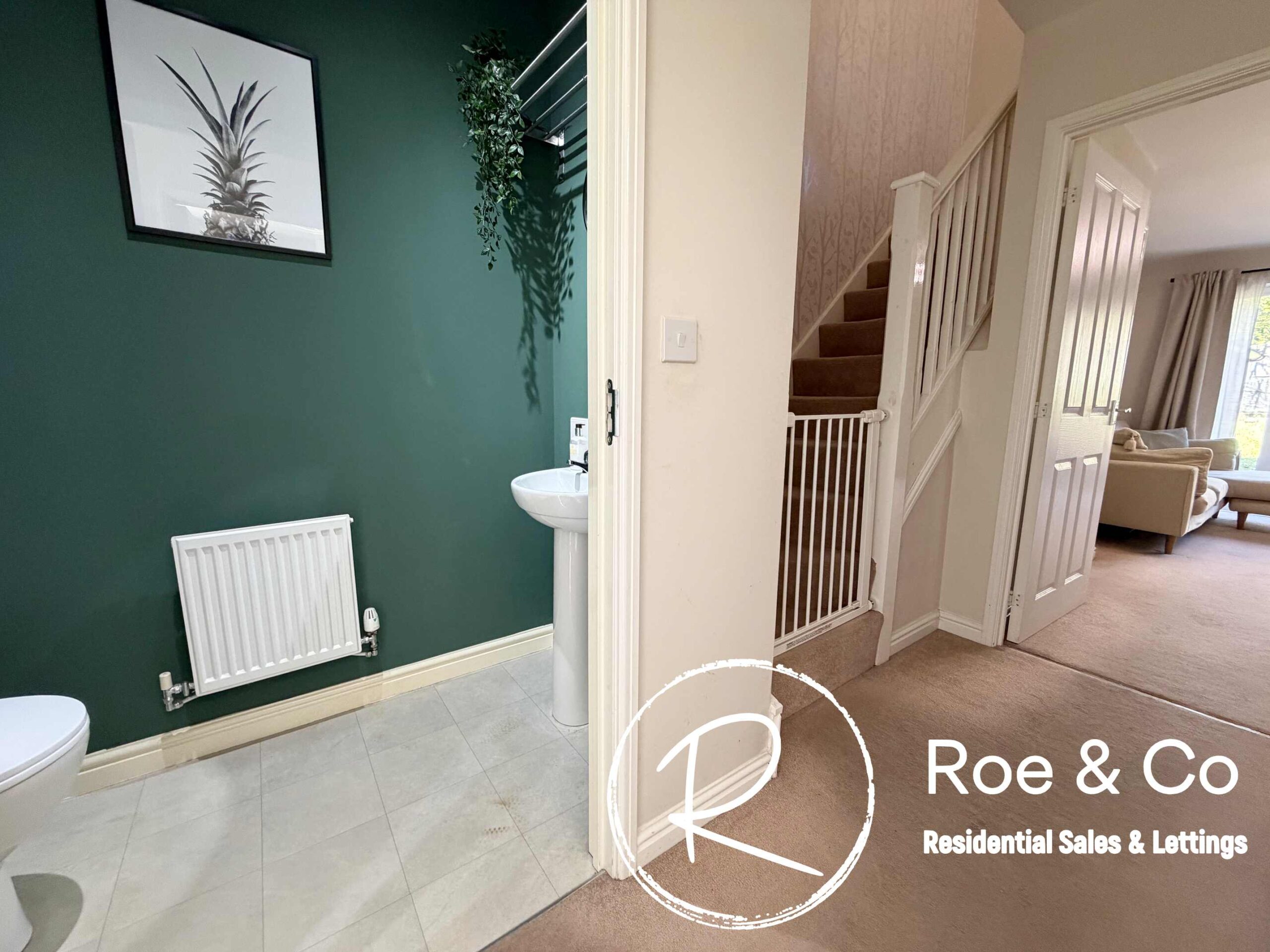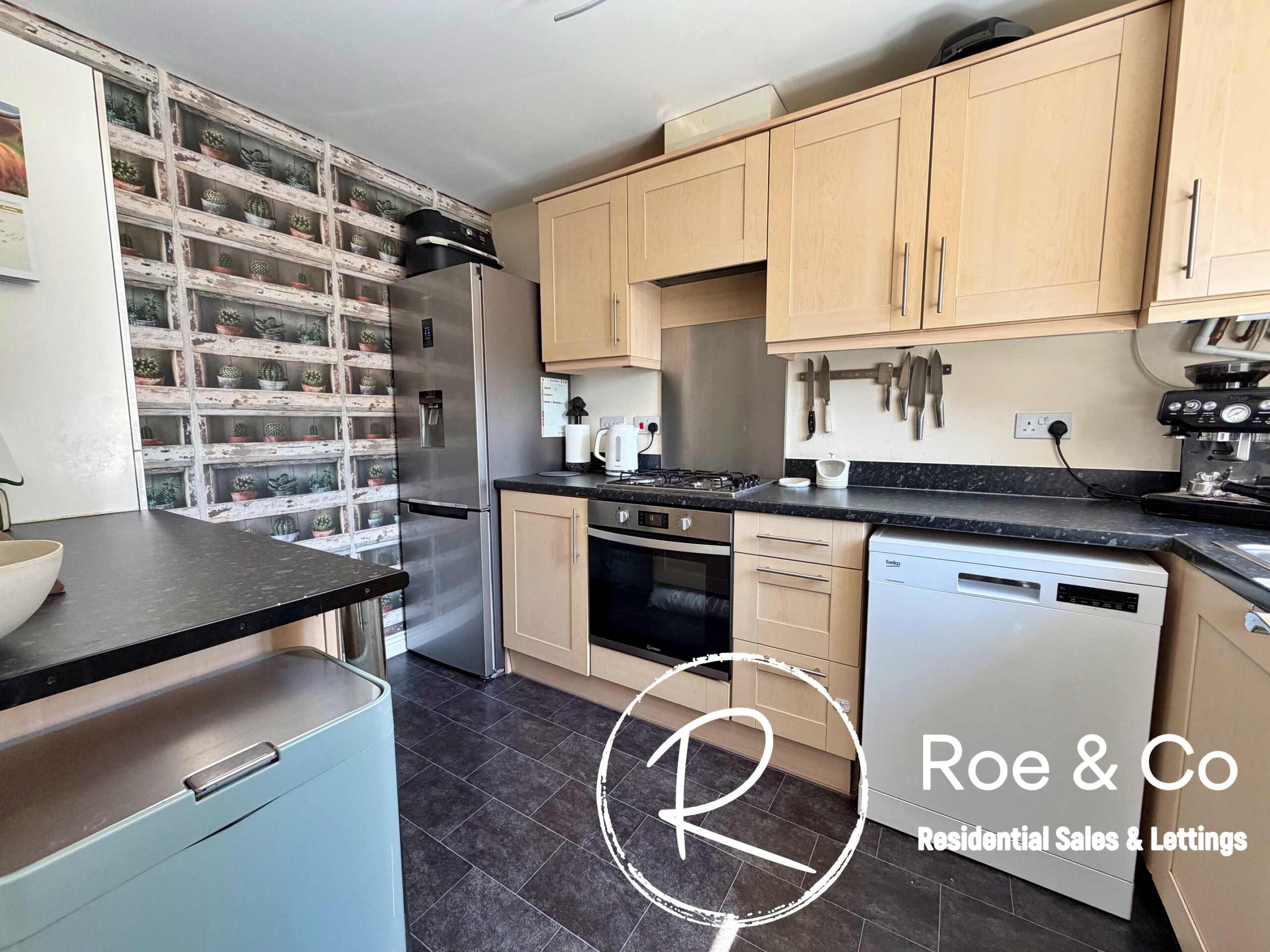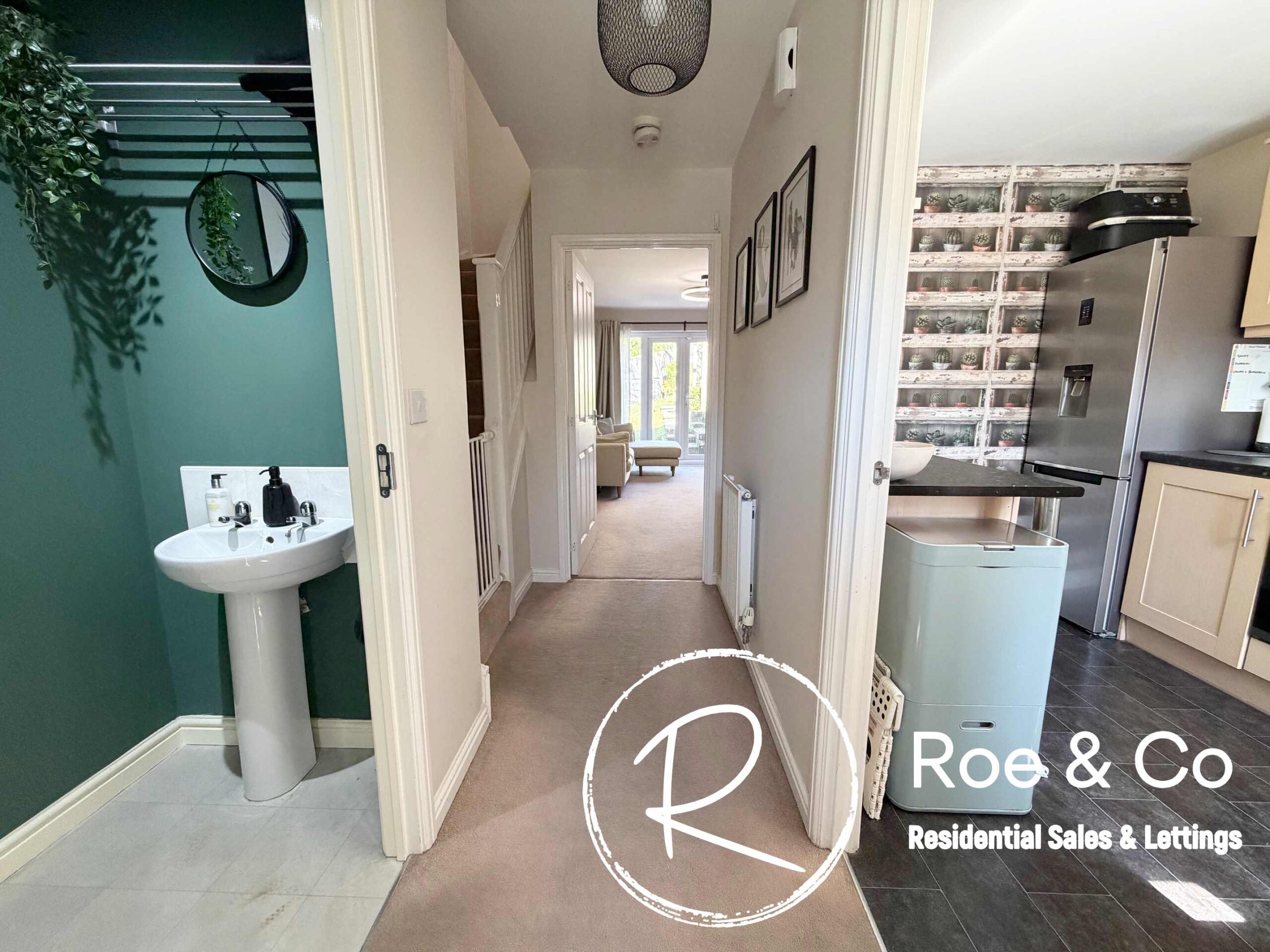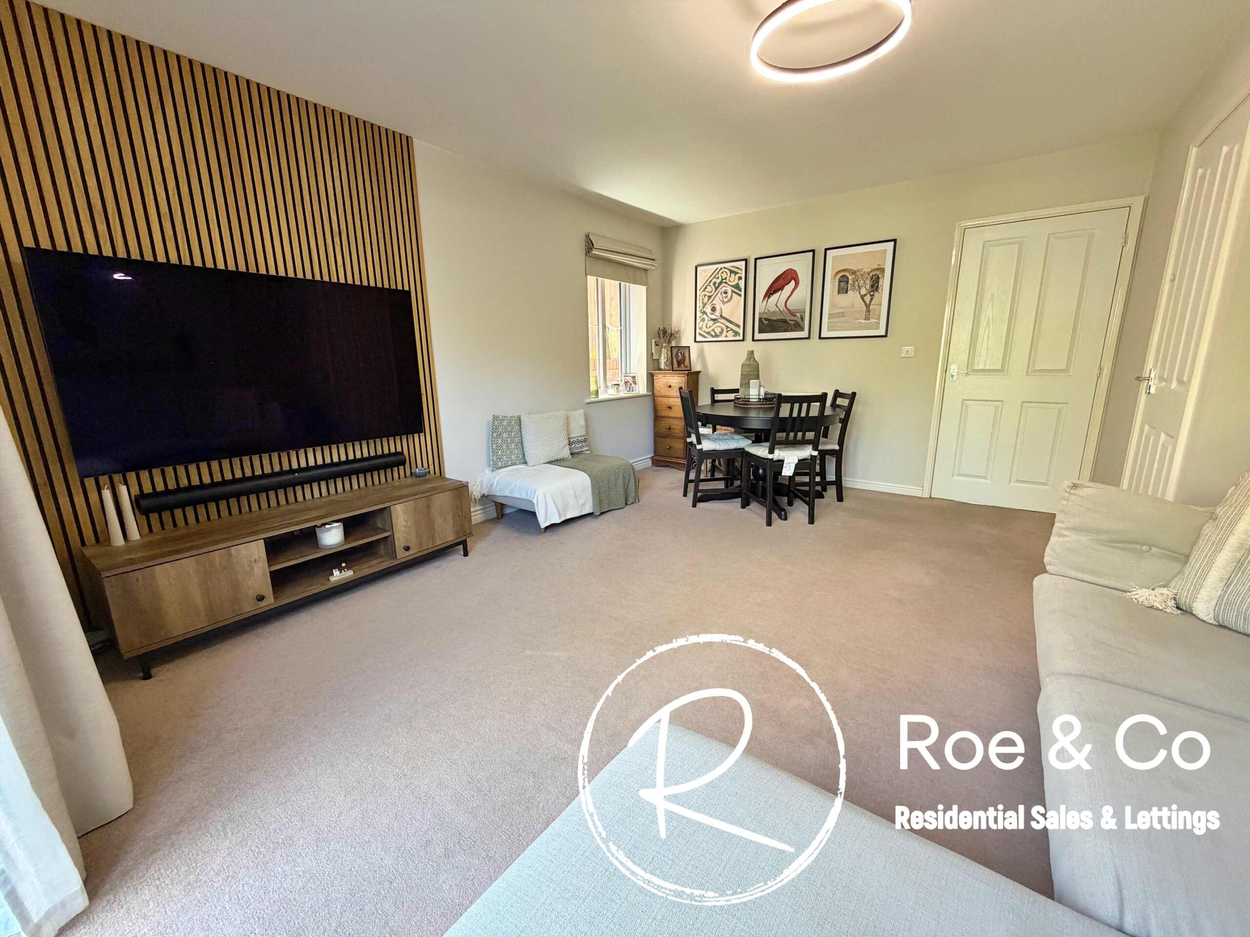 This modern home is ideal for families and professionals alike, offering spacious and versatile accommodation across three floors. Step inside to discover a welcoming entrance hall with the kitchen to the front & downstairs W.C. leading to a bright and airy living room to the rear of the property which opens up onto the garden. Upstairs, you will find two generous double bedrooms and a family bathroom, while the impressive master suite occupies the entire top floor, featuring its own en-suite shower room and plenty of built-in storage.