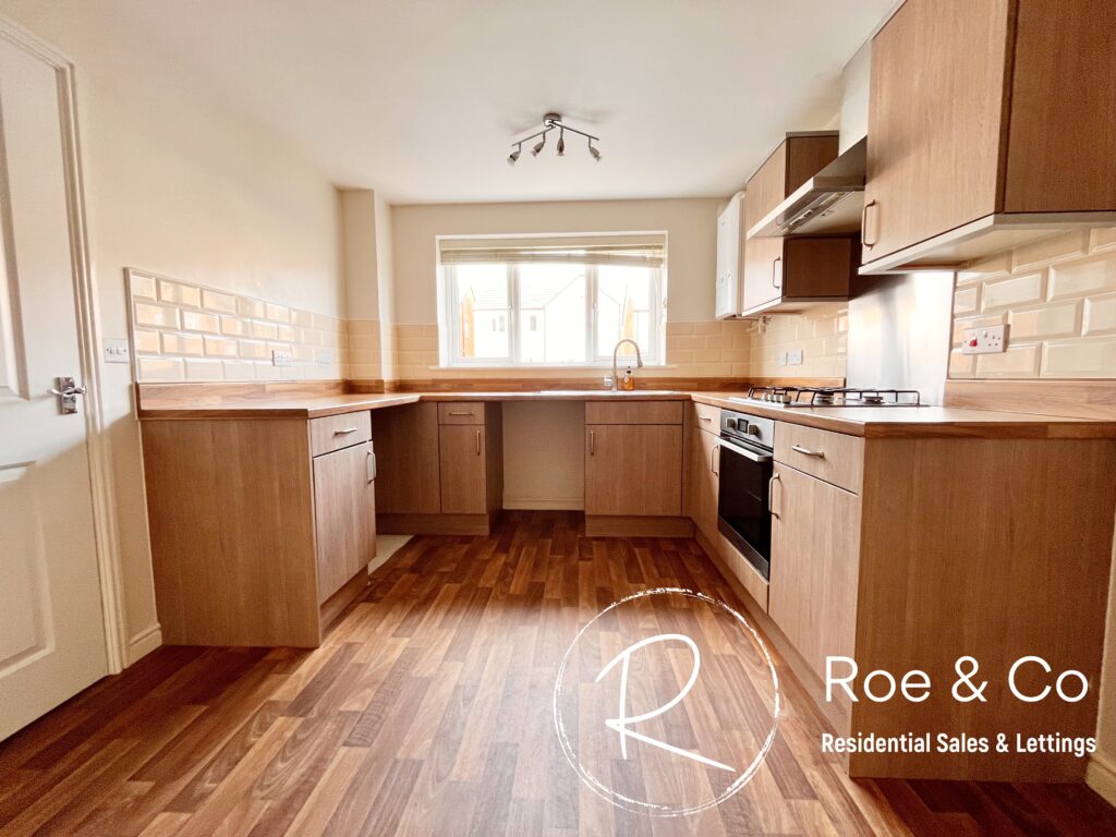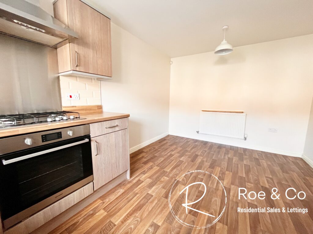Fully fitted kitchen, integrated oven, hob and vent, sink & space for a washing machine, dryer & fridge/freezer.