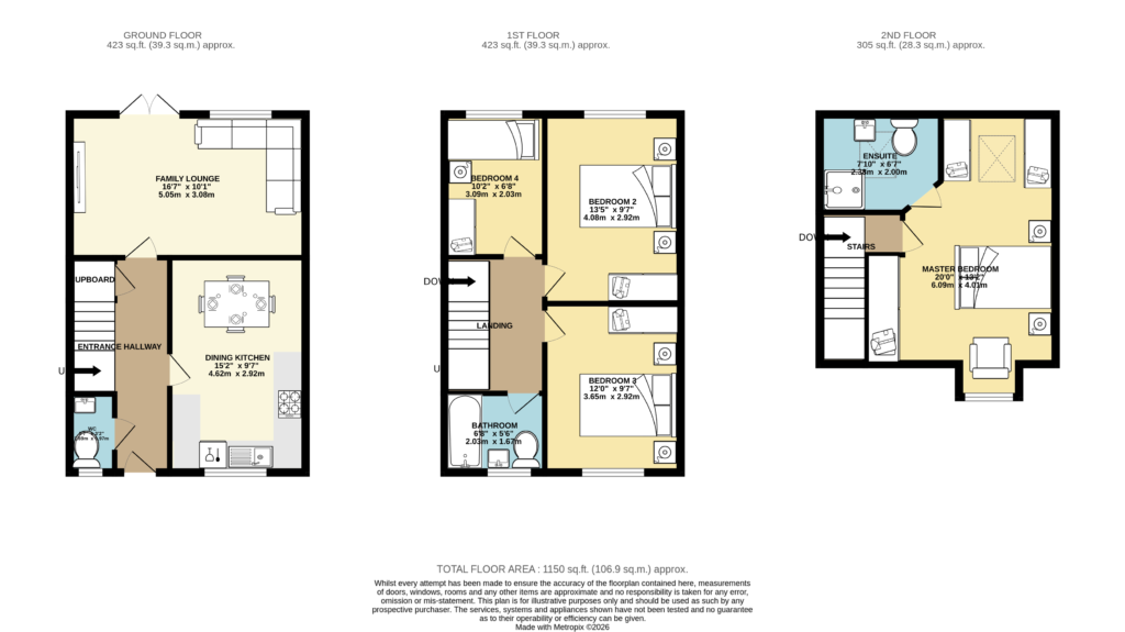 Kate Roe introduces this impressive four bedroom end of terrace town house, presenting a fantastic opportunity for families and professionals alike seeking contemporary living in a sought-after location. The spacious accommodation is arranged over three floors, offering flexibility and privacy for every member of the household. On the ground floor, you are welcomed by a bright entrance hall that leads to a generous living room, kitchen/diner & downstairs W.C. To the first floor there are three well-proportioned bedrooms share a contemporary newly fitted family bathroom, while the master suite occupies the entire top floor, boasting a large double bedroom and a luxurious en-suite bathroom.
