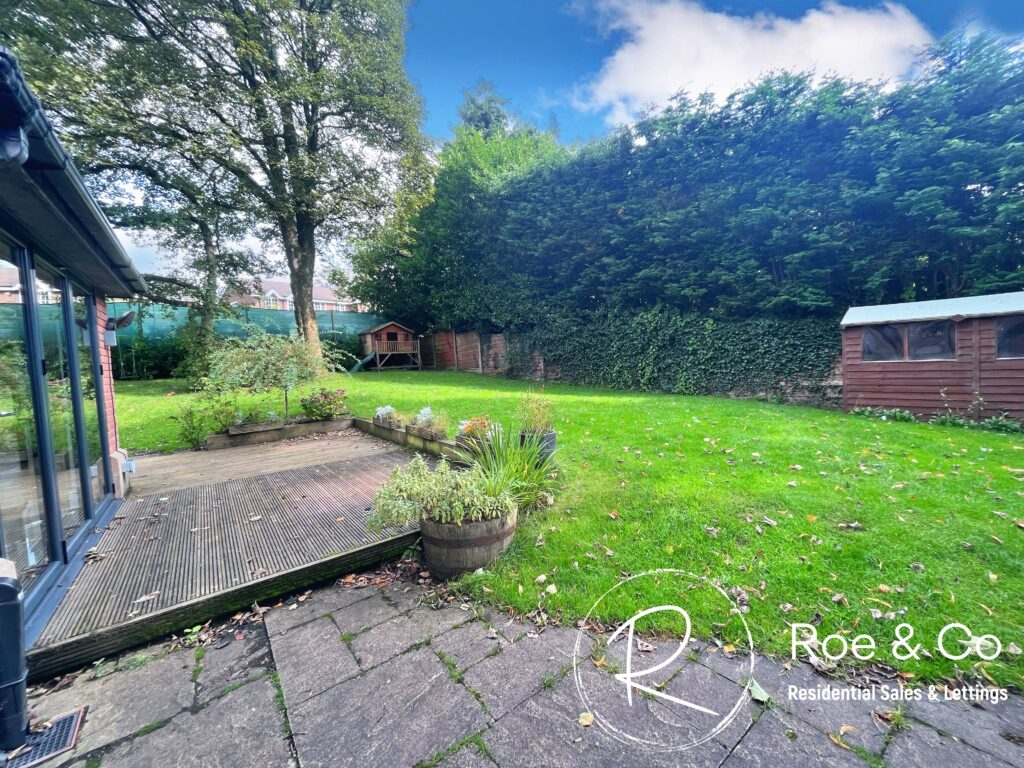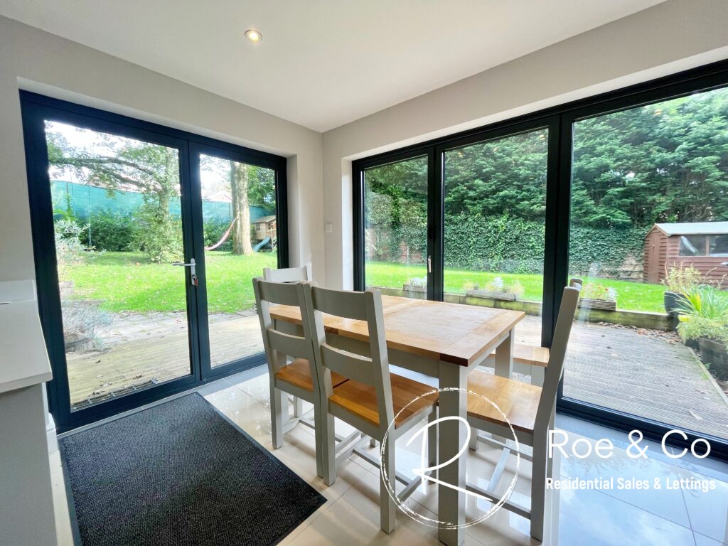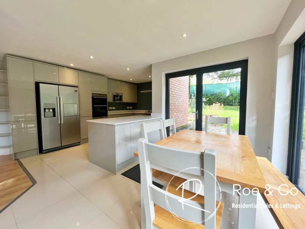 Situated off the prestigious Victoria Road, this house is located within a private and gated development, providing a luxury setting for its residents. The property features a large rear garden, perfect for entertaining or enjoying outdoor activities. The open plan modern kitchen/family room offers a contemporary space for dining and relaxing, complete with bi-fold doors that lead out onto a delightful decked area, seamlessly blending indoor and outdoor living. Additionally, the rear garden includes a substantial lawned area adorned with mature trees and plants, further enhancing its tranquil appeal.