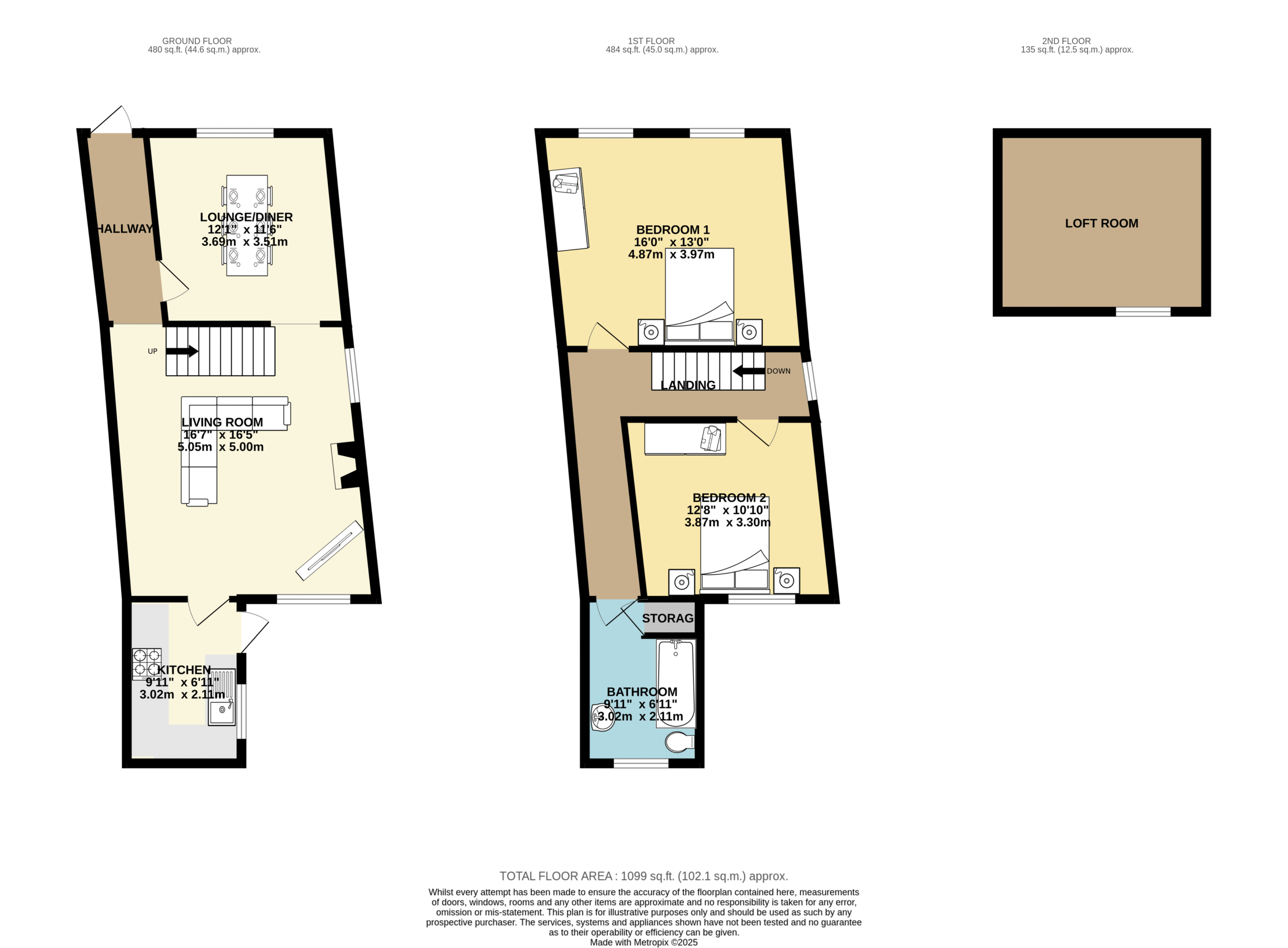 Upon entering the property, you are greeted with two good sized reception rooms & a kitchen to the rear extension. The two bedrooms offer ample space, and there is even a loft room for extra storage which is carpeted & has a velux window, accompanied by a good sized bathroom.