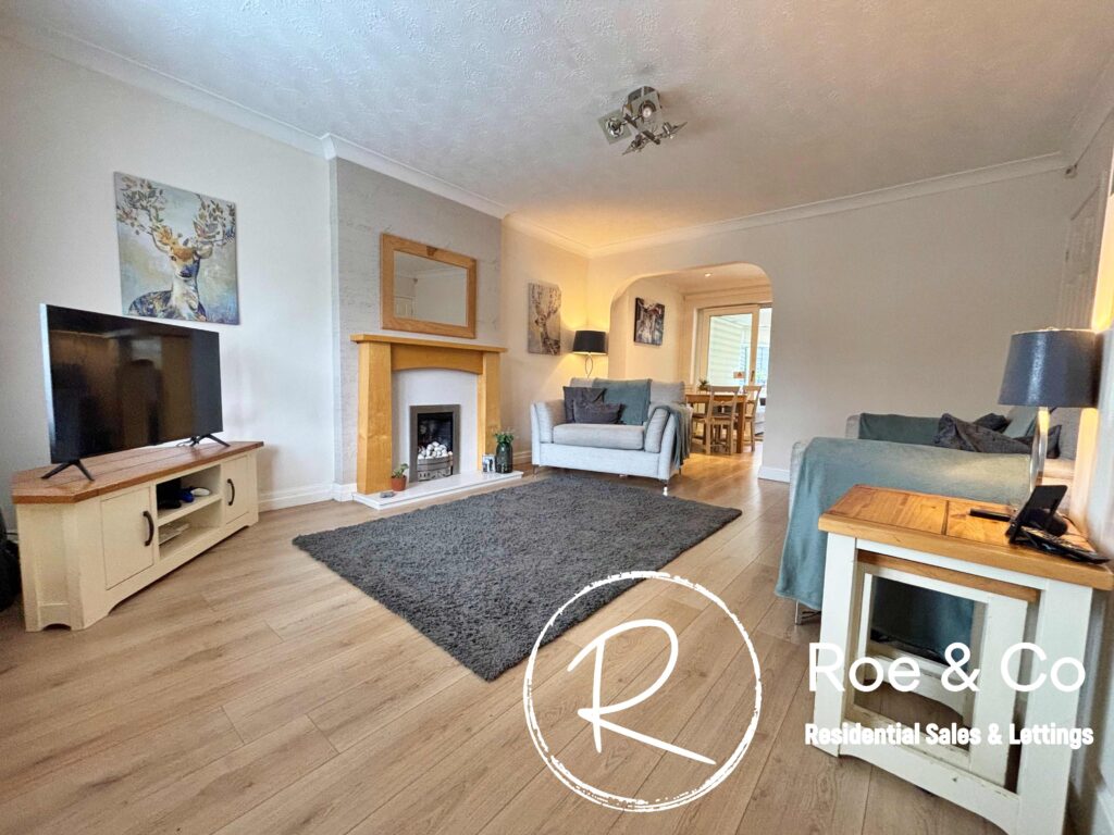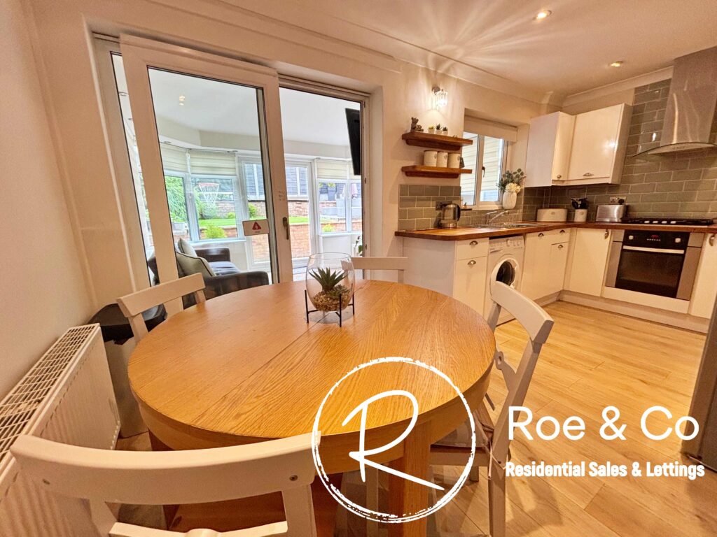 To the ground floor you are greeted with open plan living, with the living room opening onto the kitchen/diner & a conservatory which is sectioned off if needed by sliding doors and is fitted with a solid insulated roof for year round use. To the first floor there are 3 bedrooms, the master with a clever design of having wardrobes behind the sliding doors & an en-suite in between & a family bathroom.