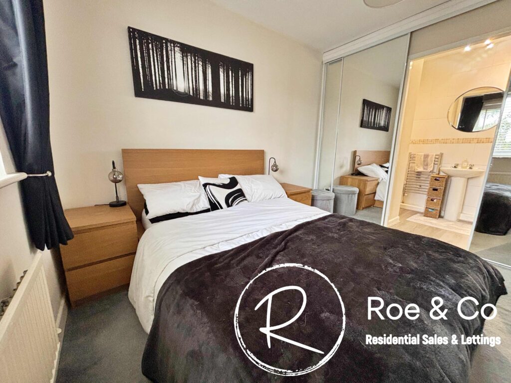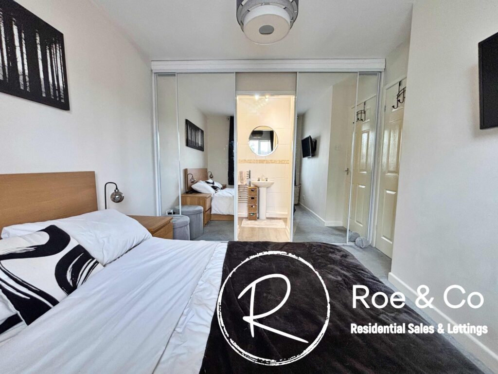 Sliding doors which reveal two wardrobe spaces and an en-suite