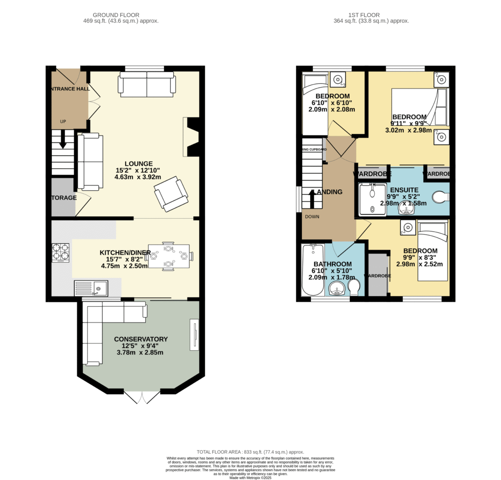 Bedroom three 6' 10" x 6' 10" (2.08m x 2.08m)