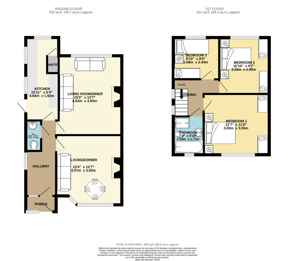 Living room/Diner 13' 4" x 12' 7" (4.06m x 3.84m)